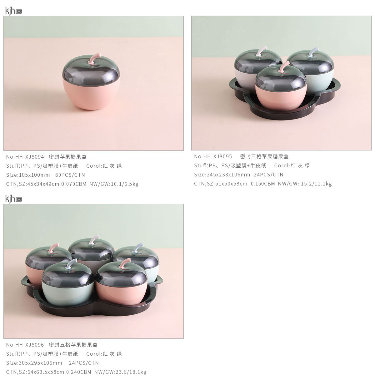 密封蘋果糖果盒/三格/五格
