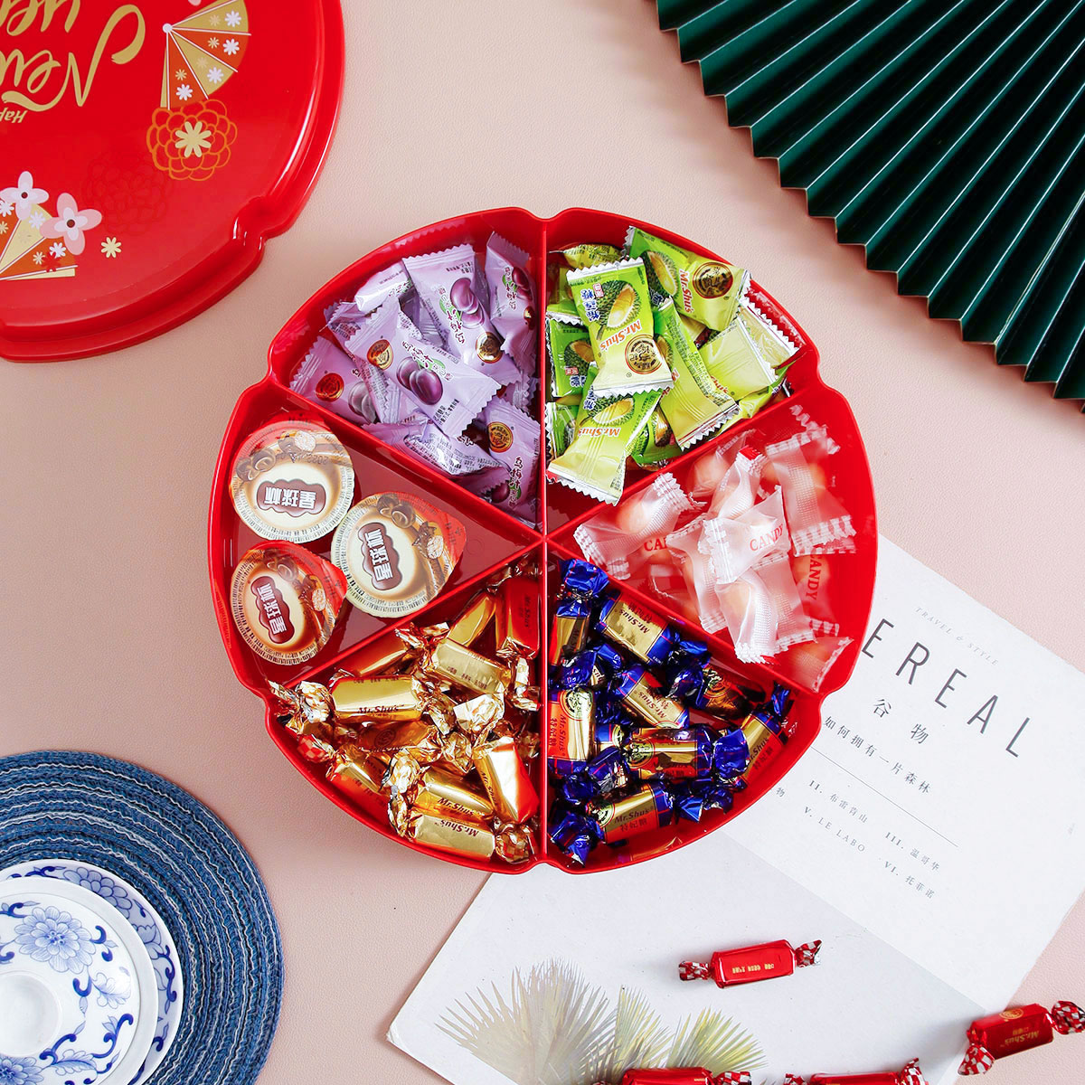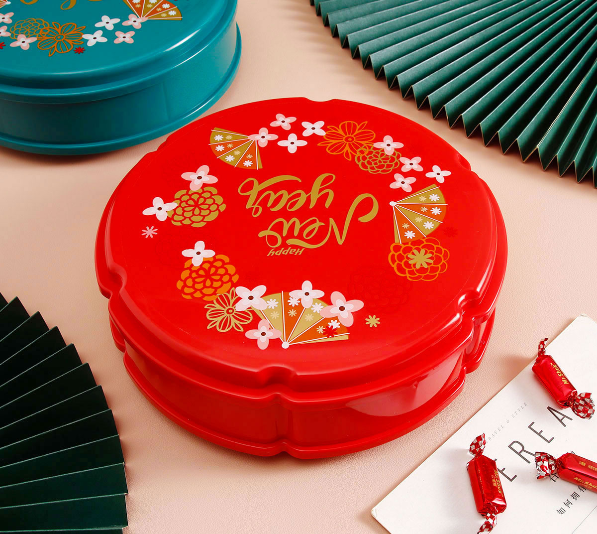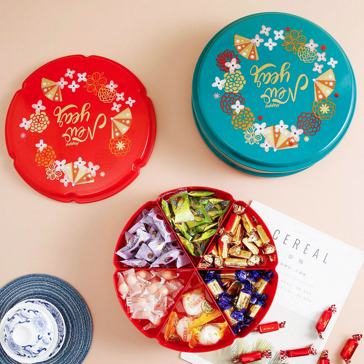 單層/雙層圓型/花型旋轉(zhuǎn)糖果盒 紅色/綠色