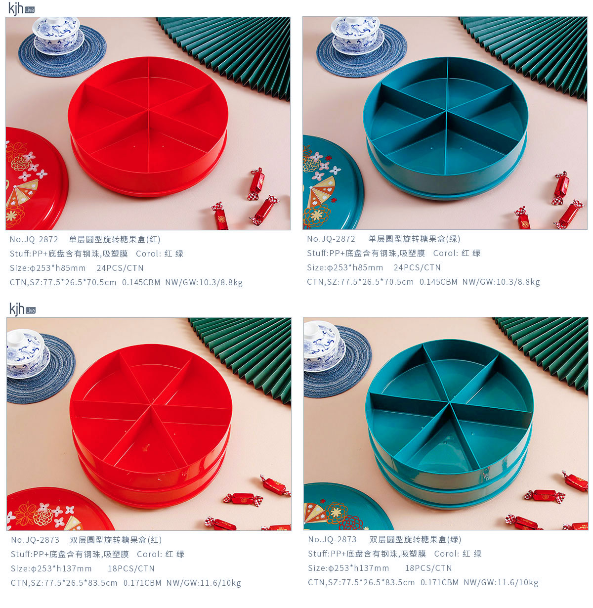 單層/雙層圓型/花型旋轉(zhuǎn)糖果盒  紅色/綠色