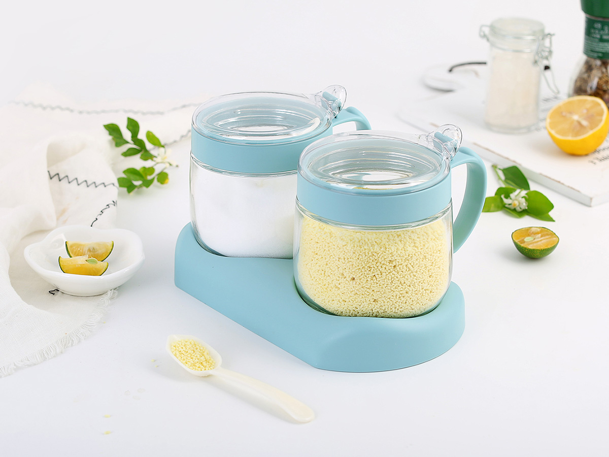 圓形玻璃調(diào)味罐(2格)