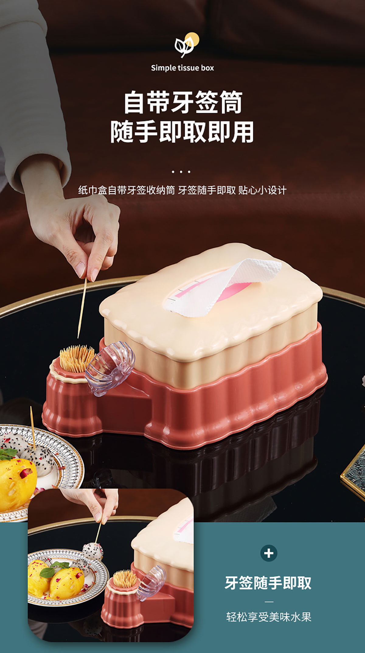 北歐升降紙巾盒/帶牙簽筒