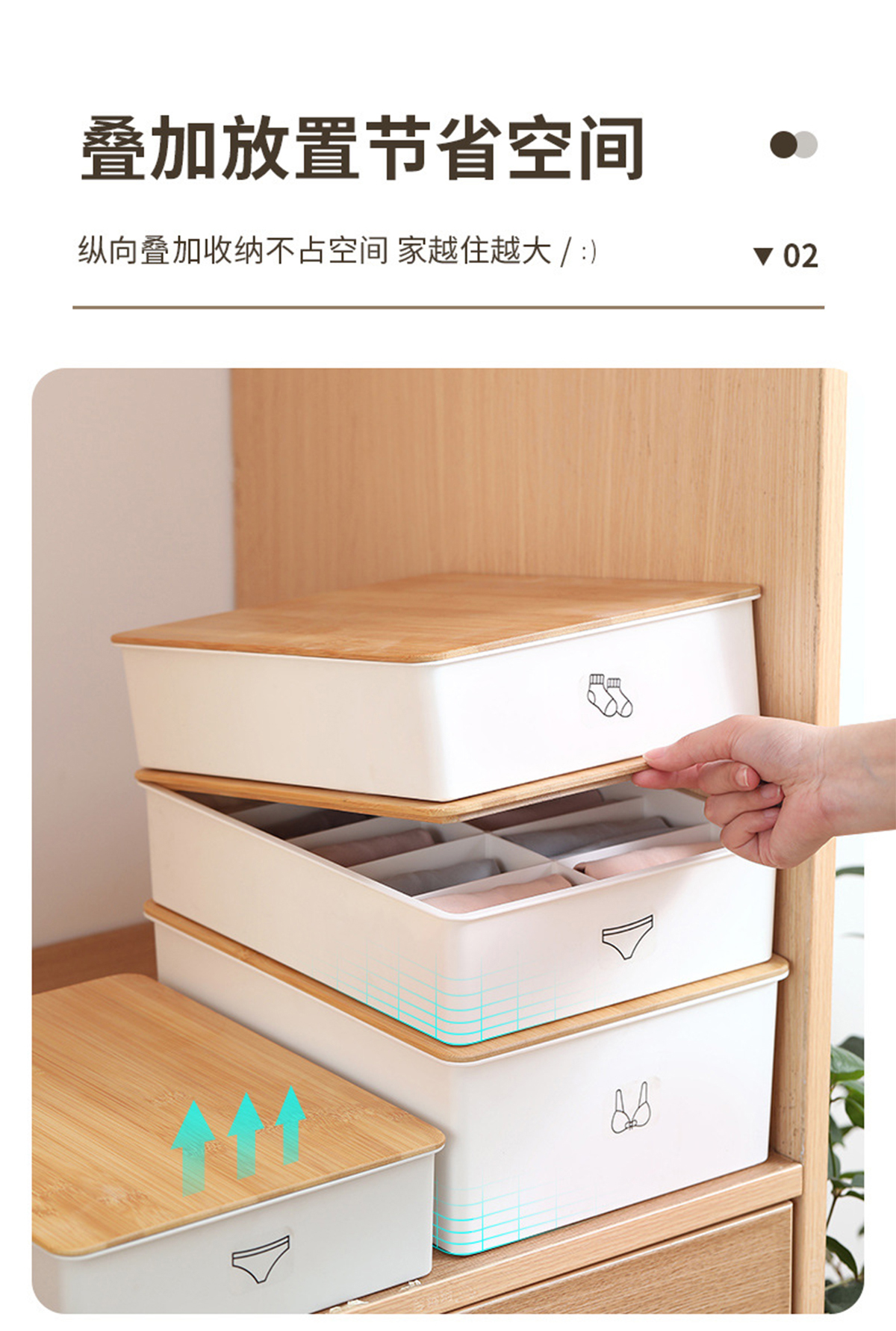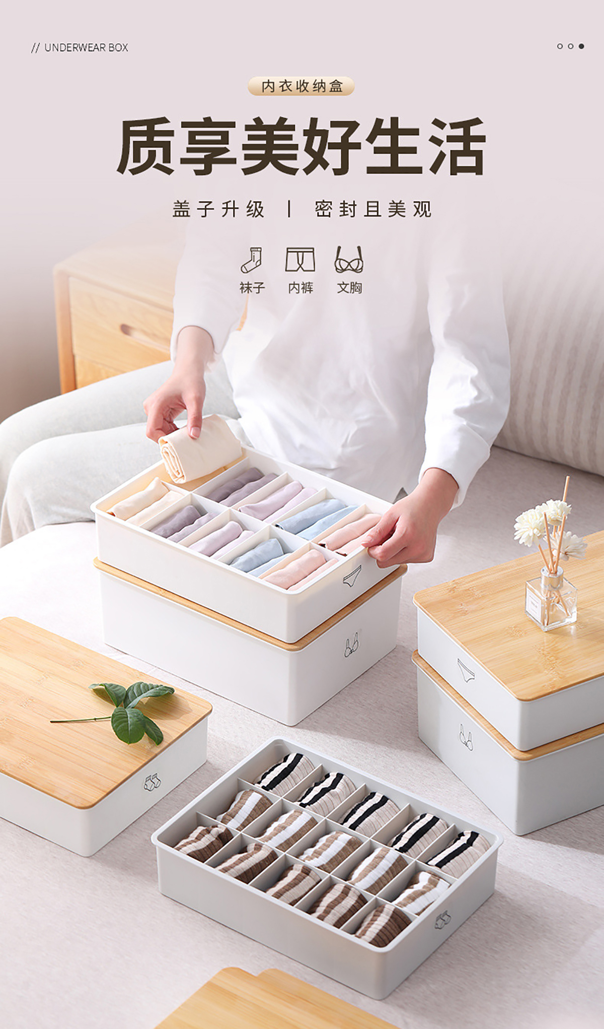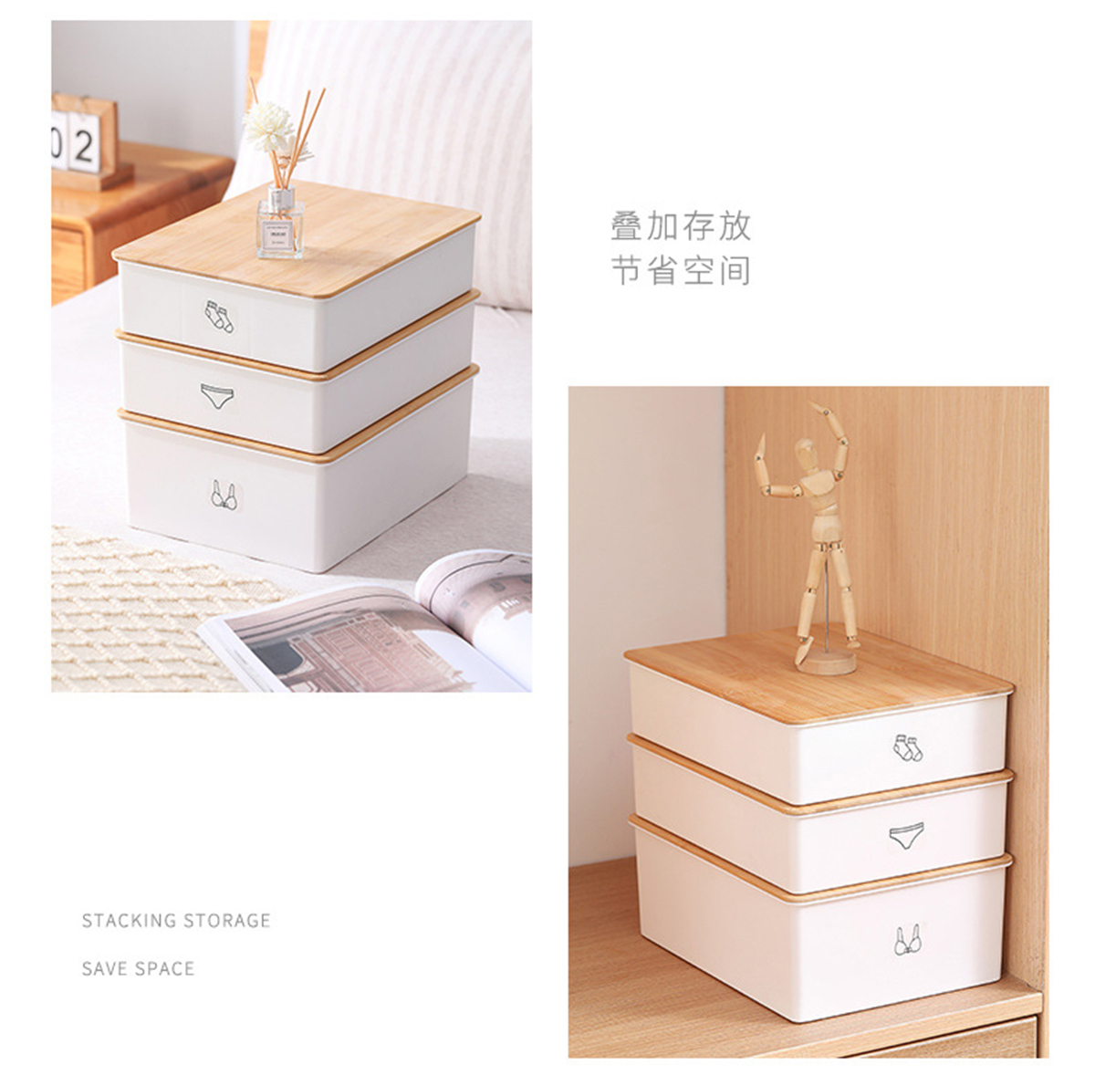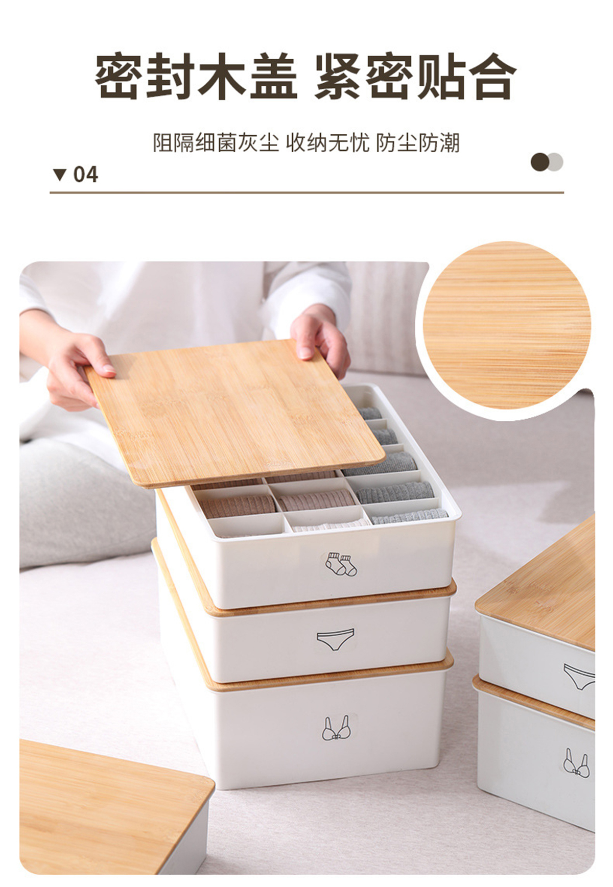 竹蓋內(nèi)褲/襪子/內(nèi)衣/三件套收納盒