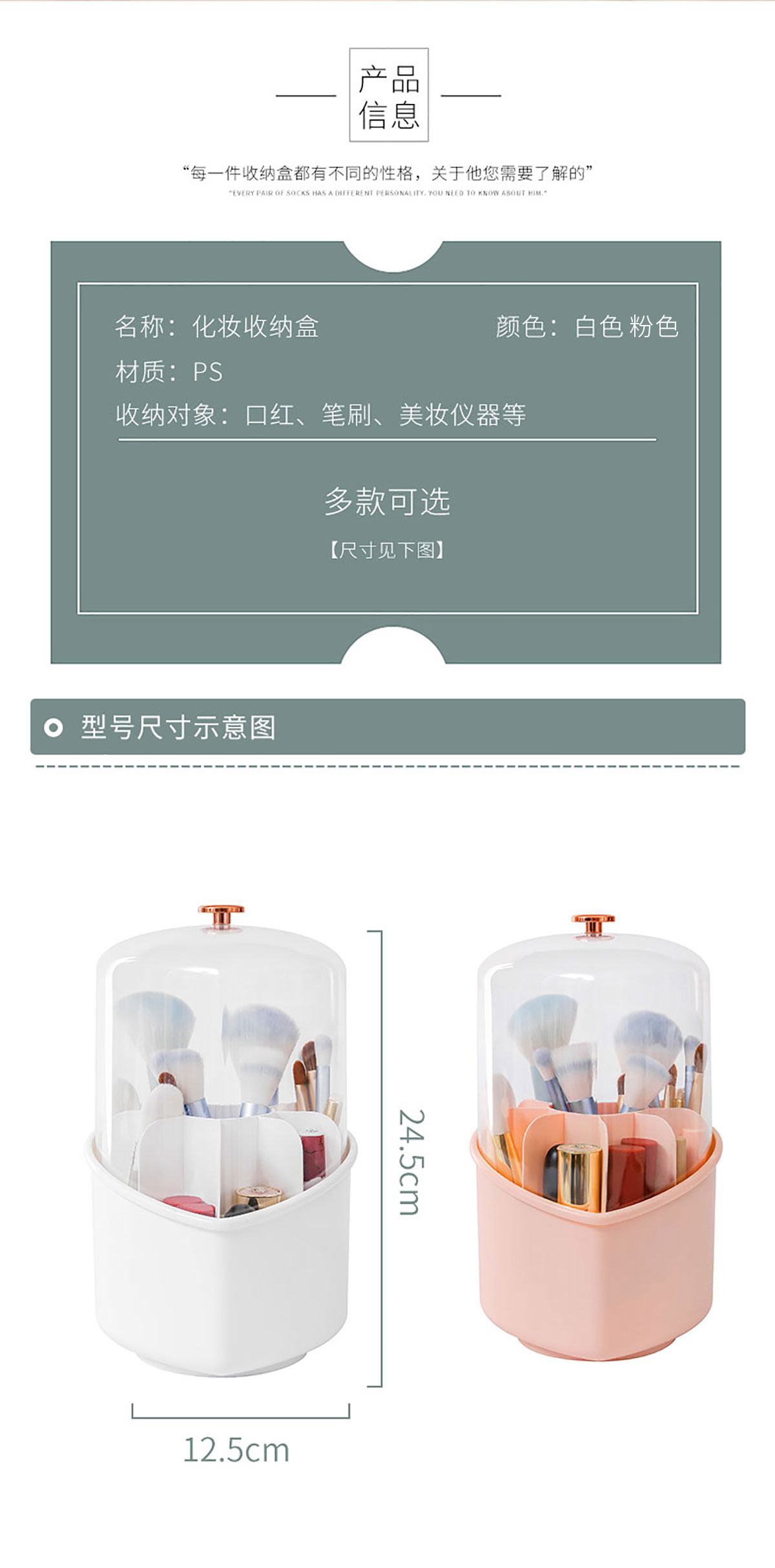 心形化妝收納盒 (帶蓋/不帶蓋)