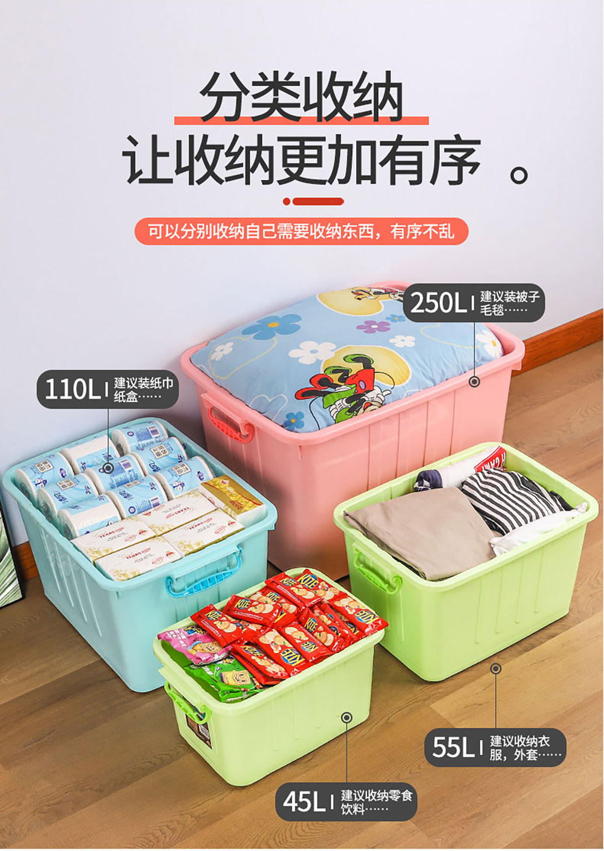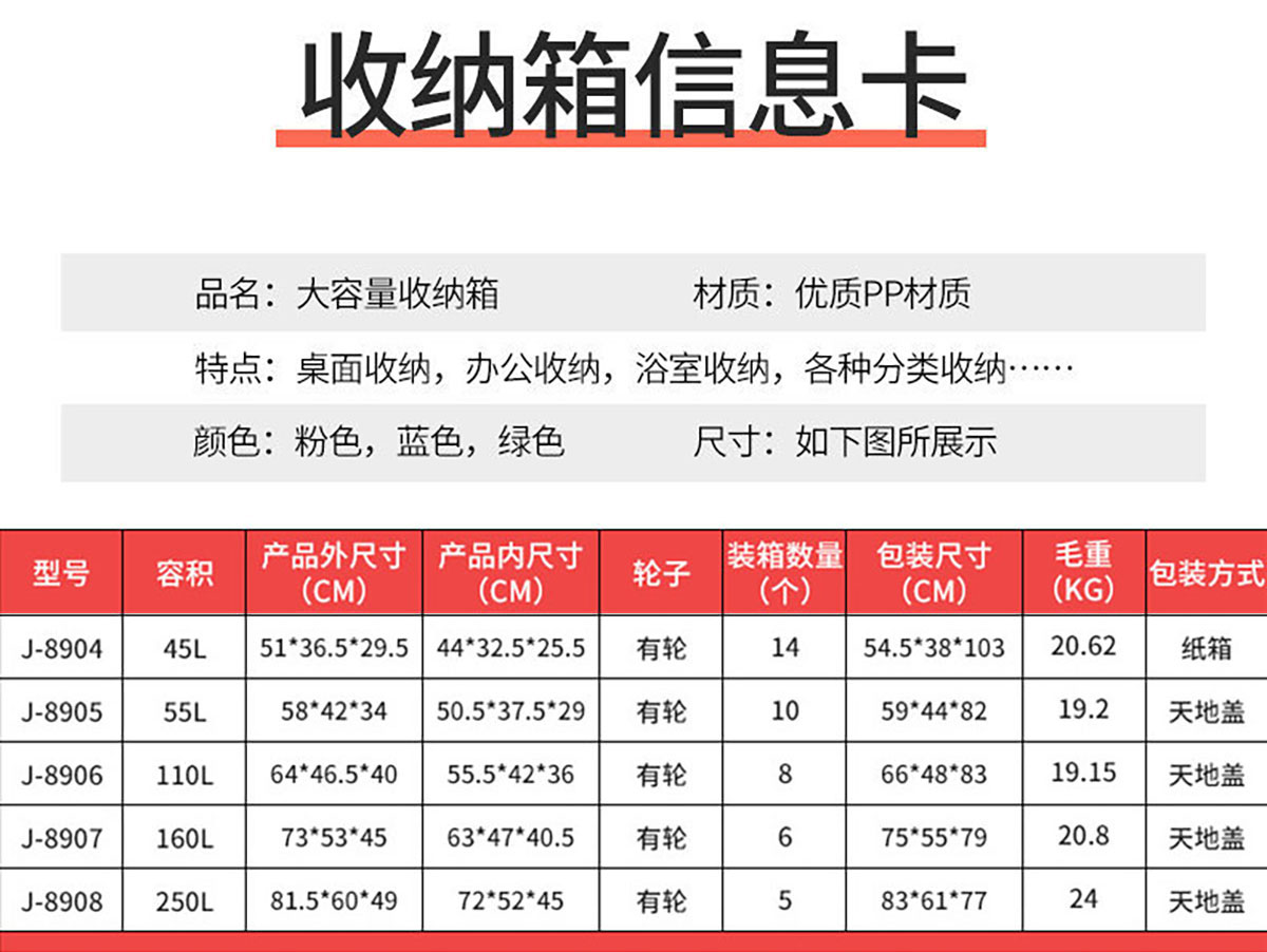 儲物箱45L/55L/110L/160L/250L(有輪) 實(shí)色/透明色