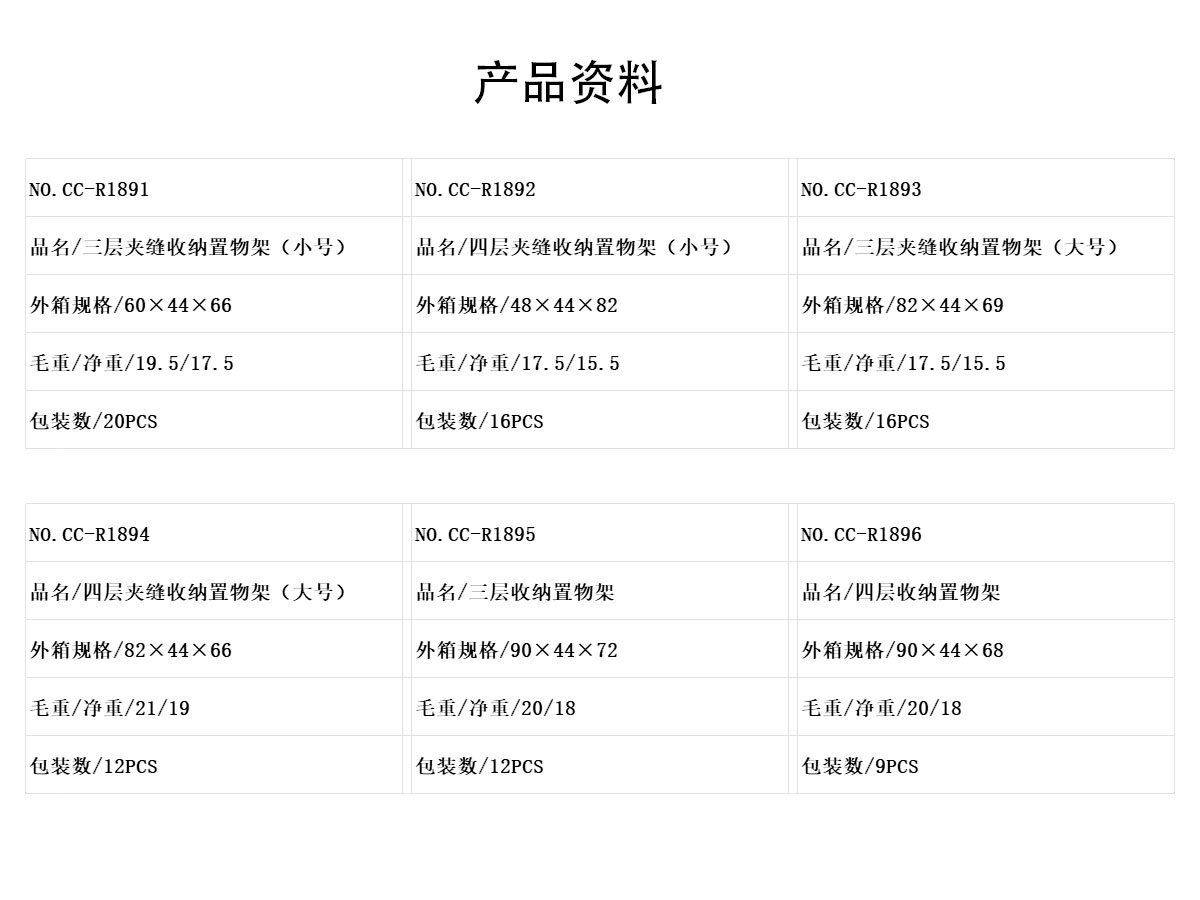 NetWeight(kg):17.5/15.5/15.5/19/18/18