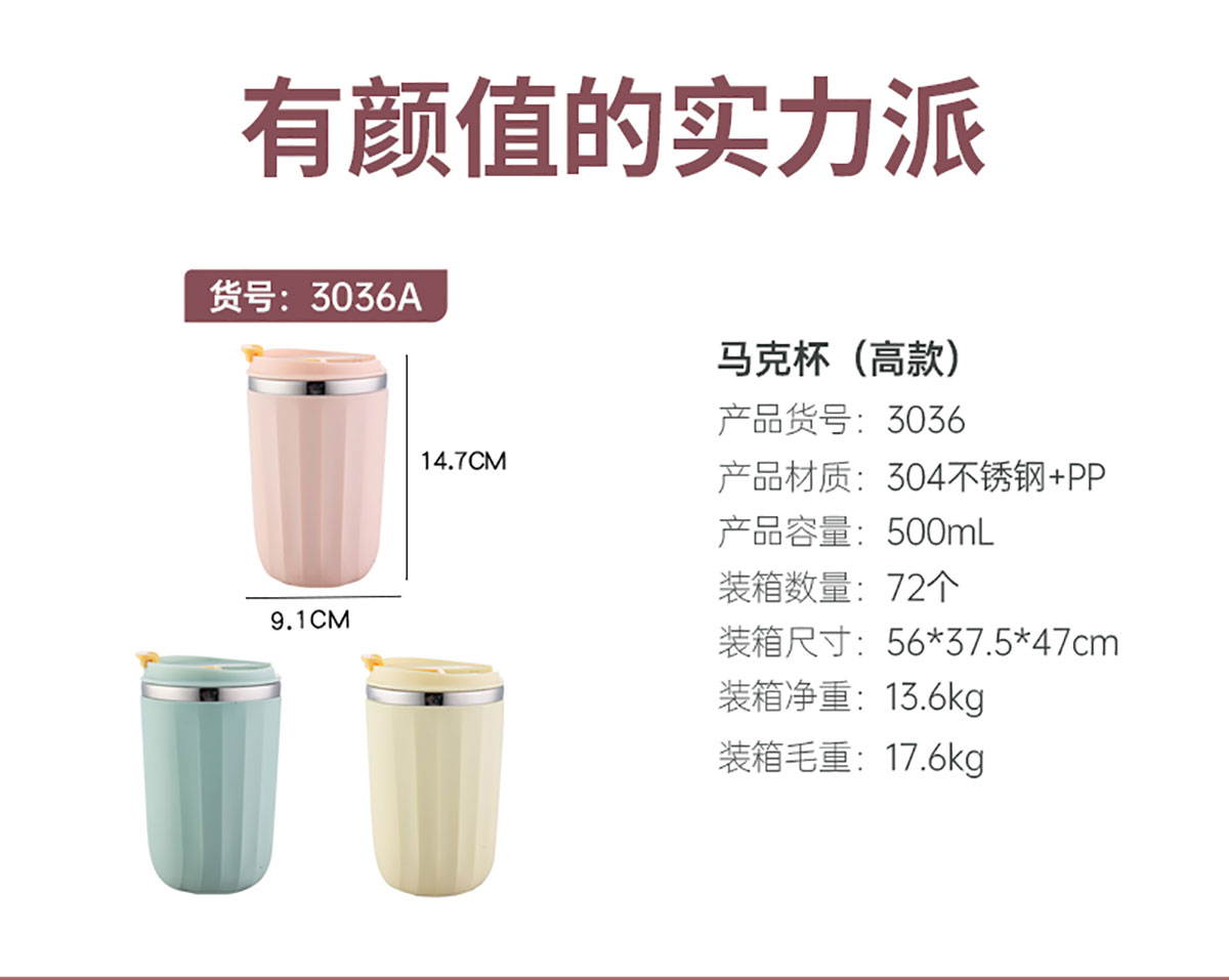 500ml馬卡龍翻扣304不銹鋼馬克杯