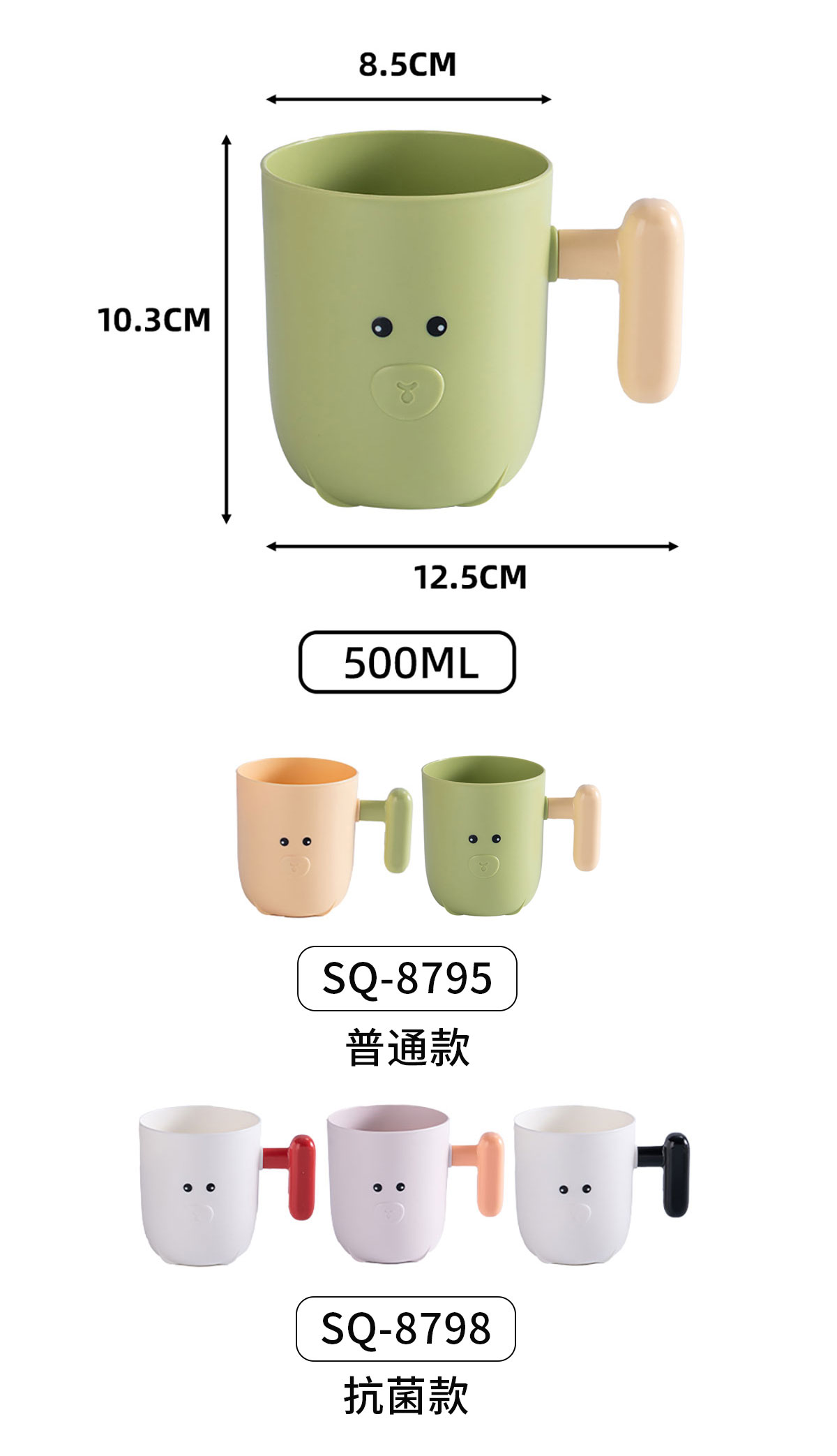 Size: SQ-8795(普通款):φ85*125*103mm/500ml SQ-8798(抗菌款:φ85*125*103mm/500ml