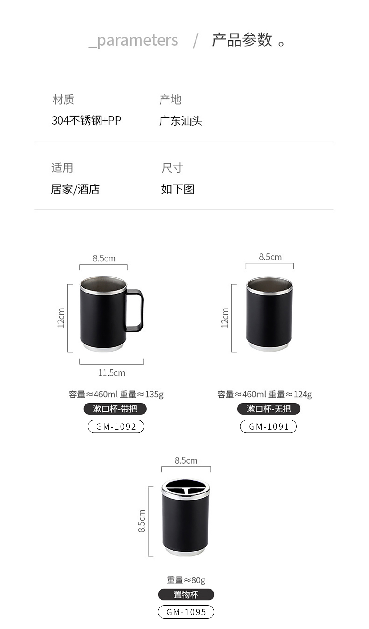GM-1091(漱口杯無(wú)柄):Φ85*120mm