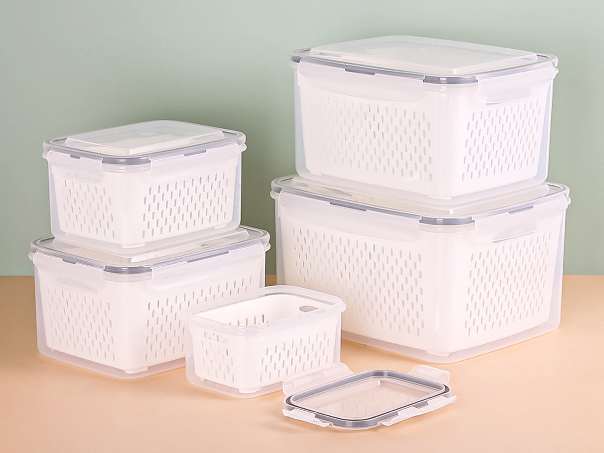 五件套圓形/正方形/長方形密封瀝水保鮮盒