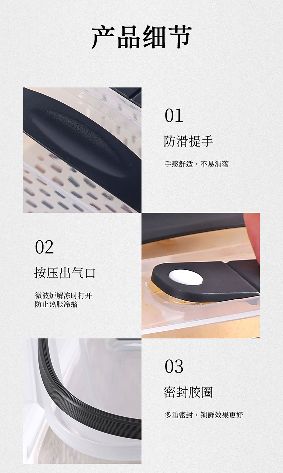 三件/四件/五件/六件套手提長方形密封瀝水保鮮盒
