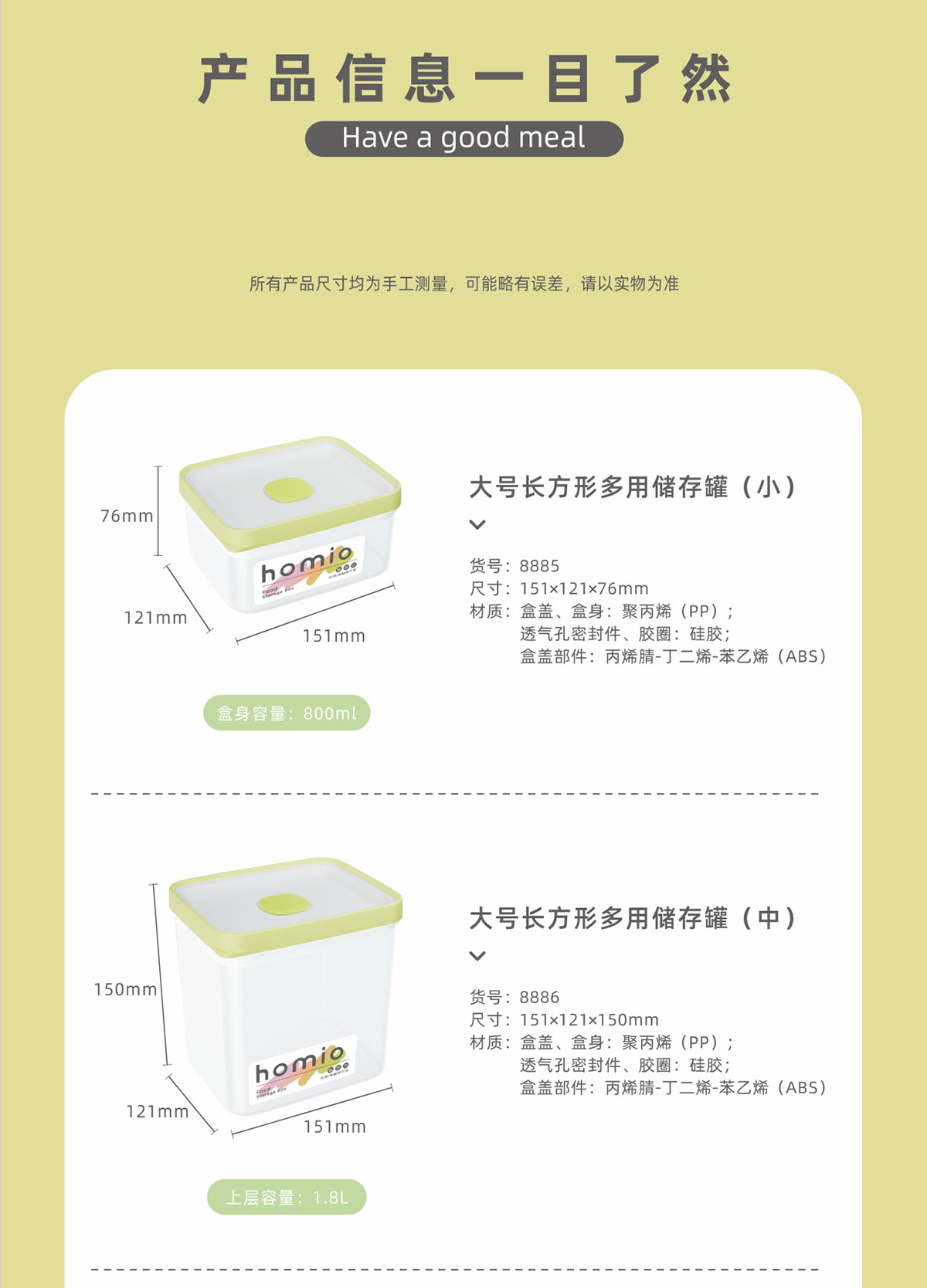 Size: HM-8885(小號800ml):151*121*76mm