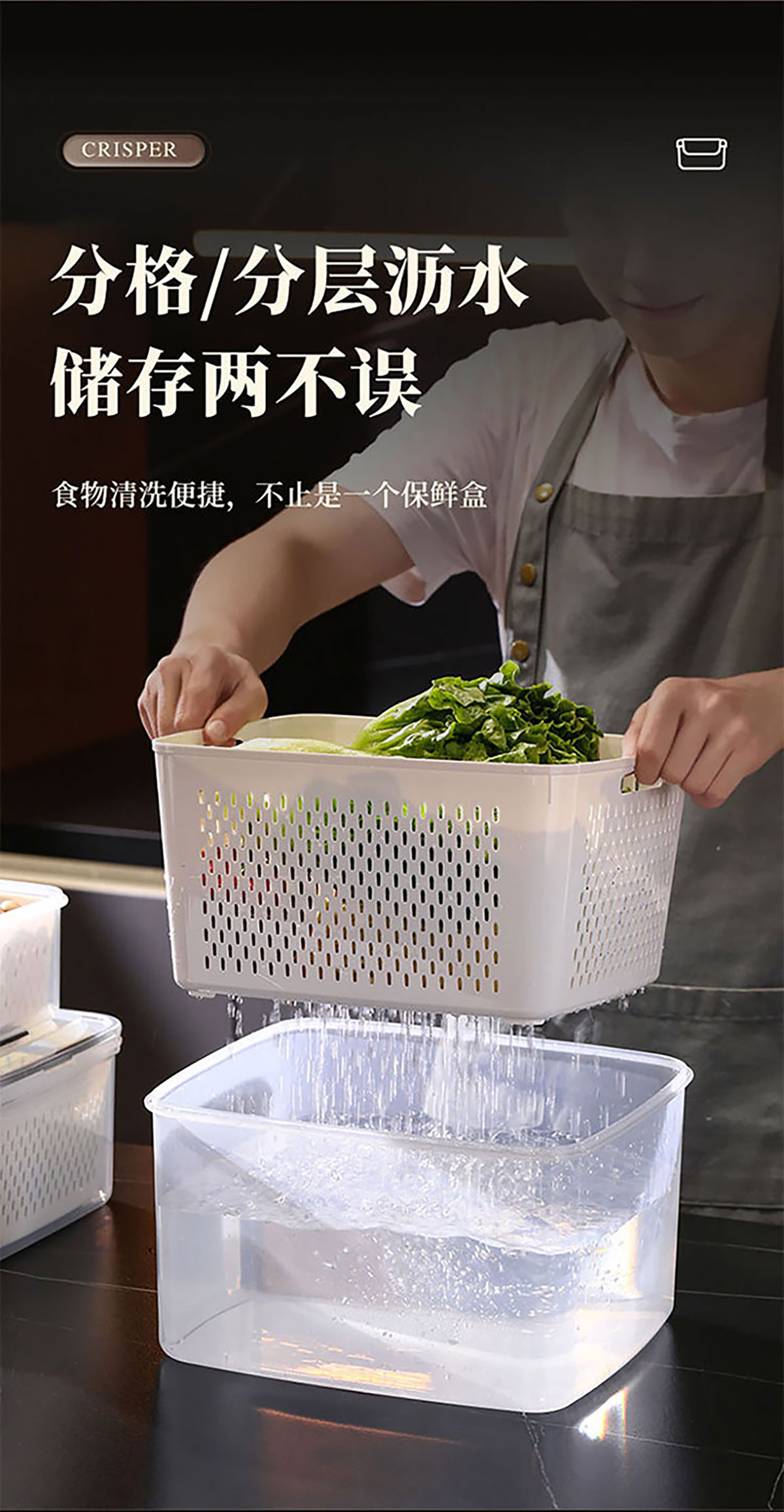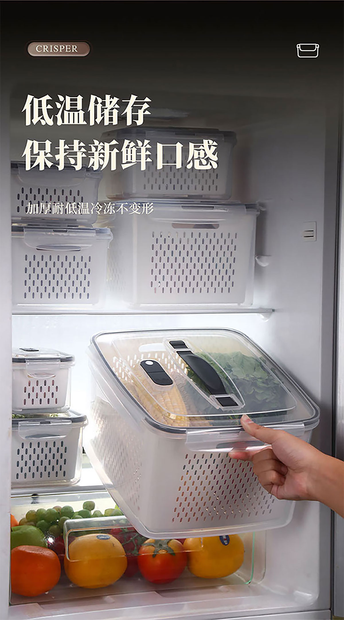 三件/四件/五件/六件/七件手提套長方形密封瀝水保鮮盒