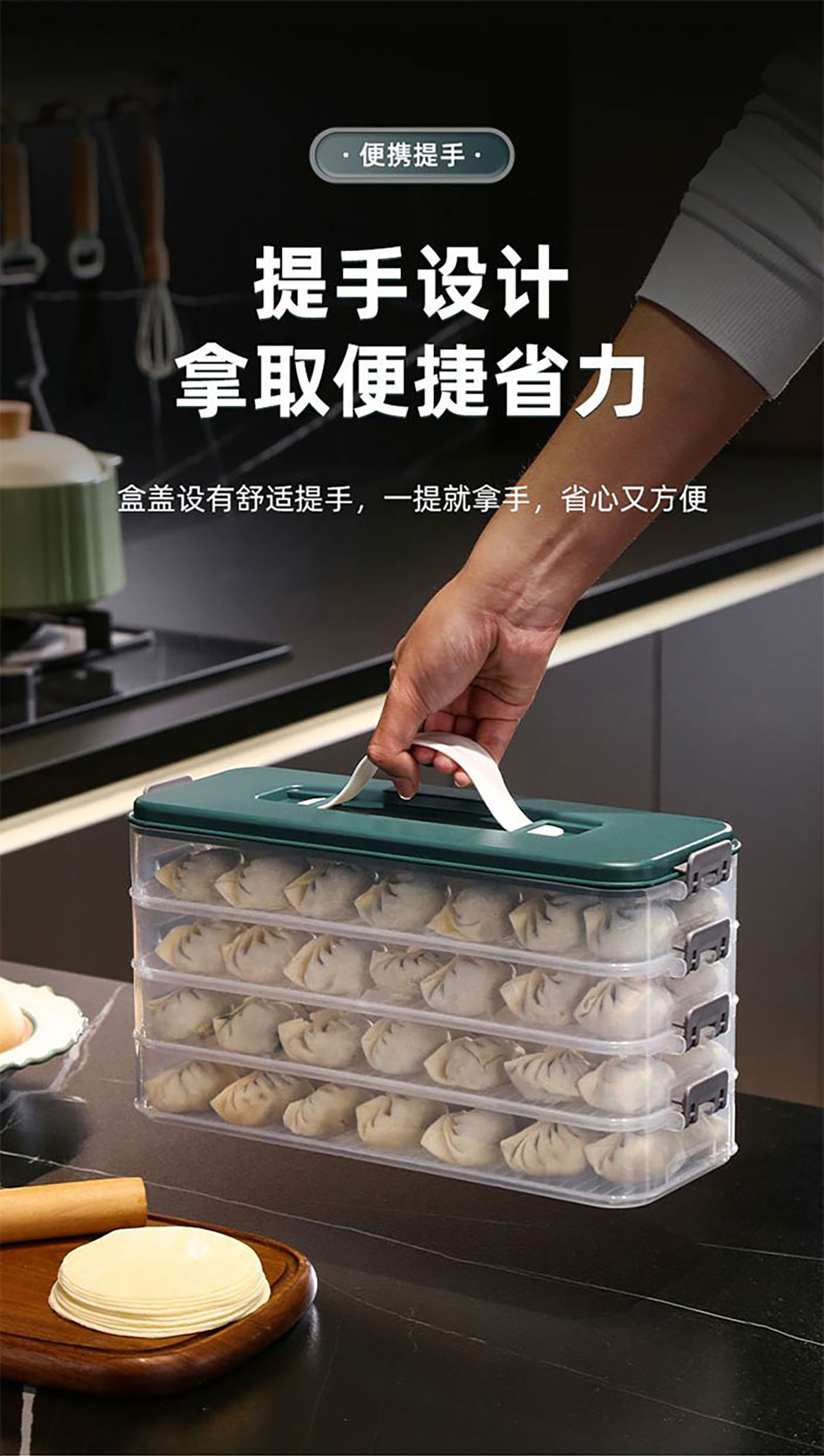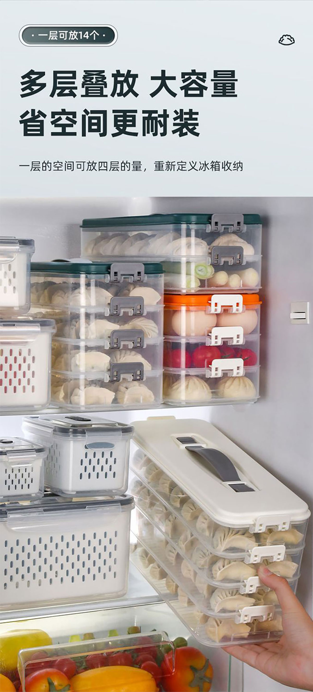 簡(jiǎn)系手提餃子收納盒(單層/2層/3層/4層/5層)