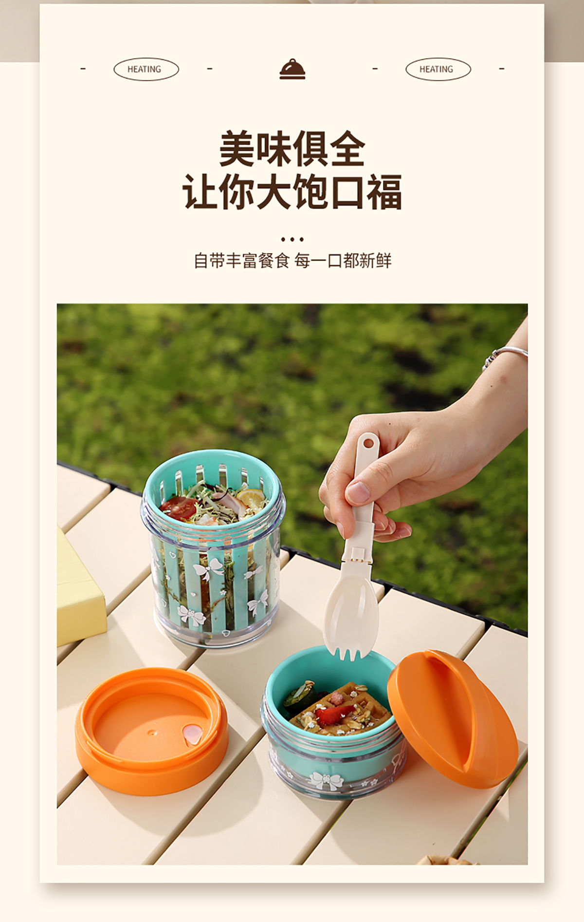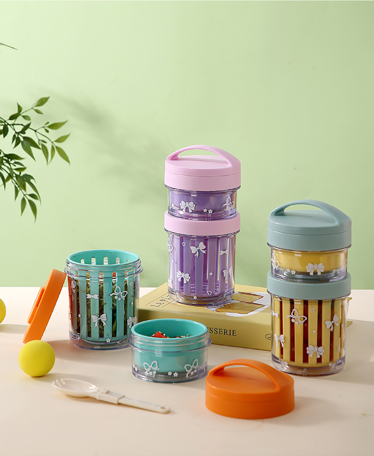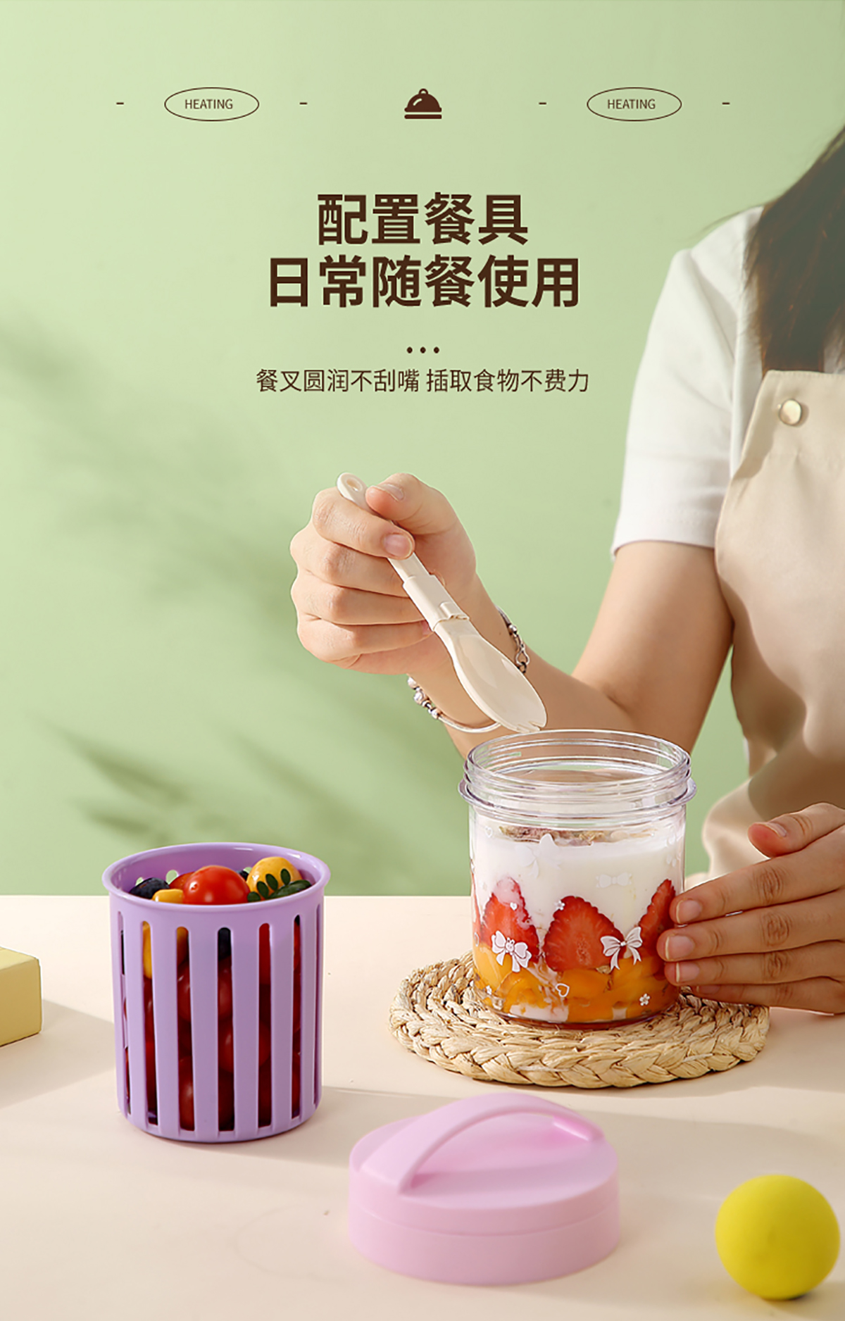 便攜式水果沙拉杯500ml/500+200ml(配PP折疊叉勺)