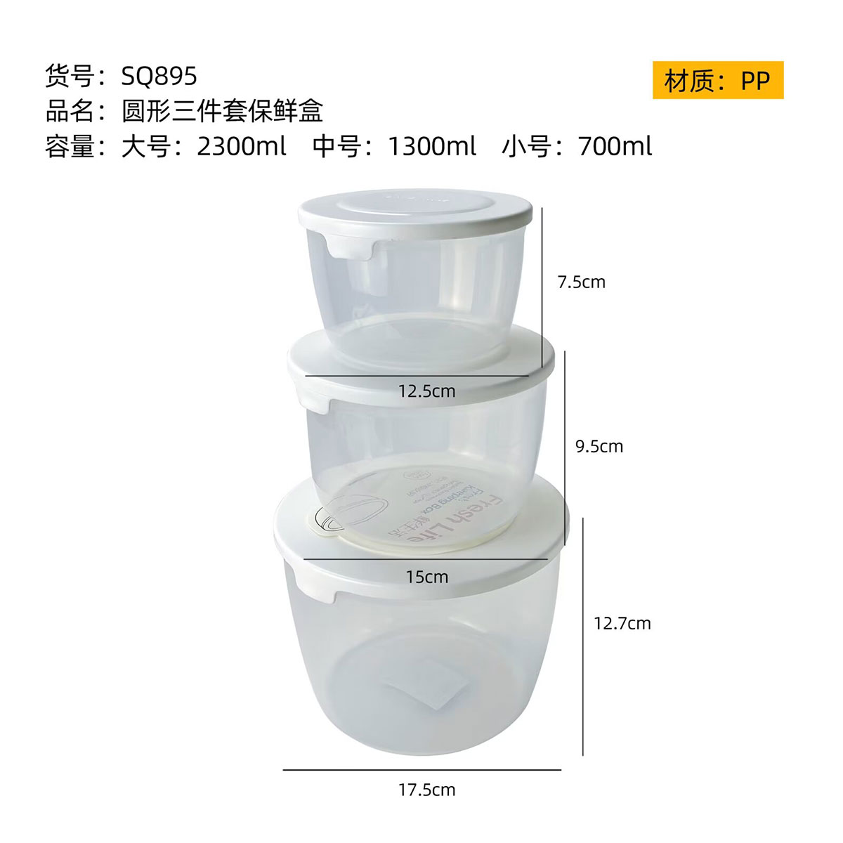 SQ-895(三件套):小號(hào):125*75mm/700ml 中號(hào):150*95mm/1300ml 大號(hào):175*127mm/2300ml