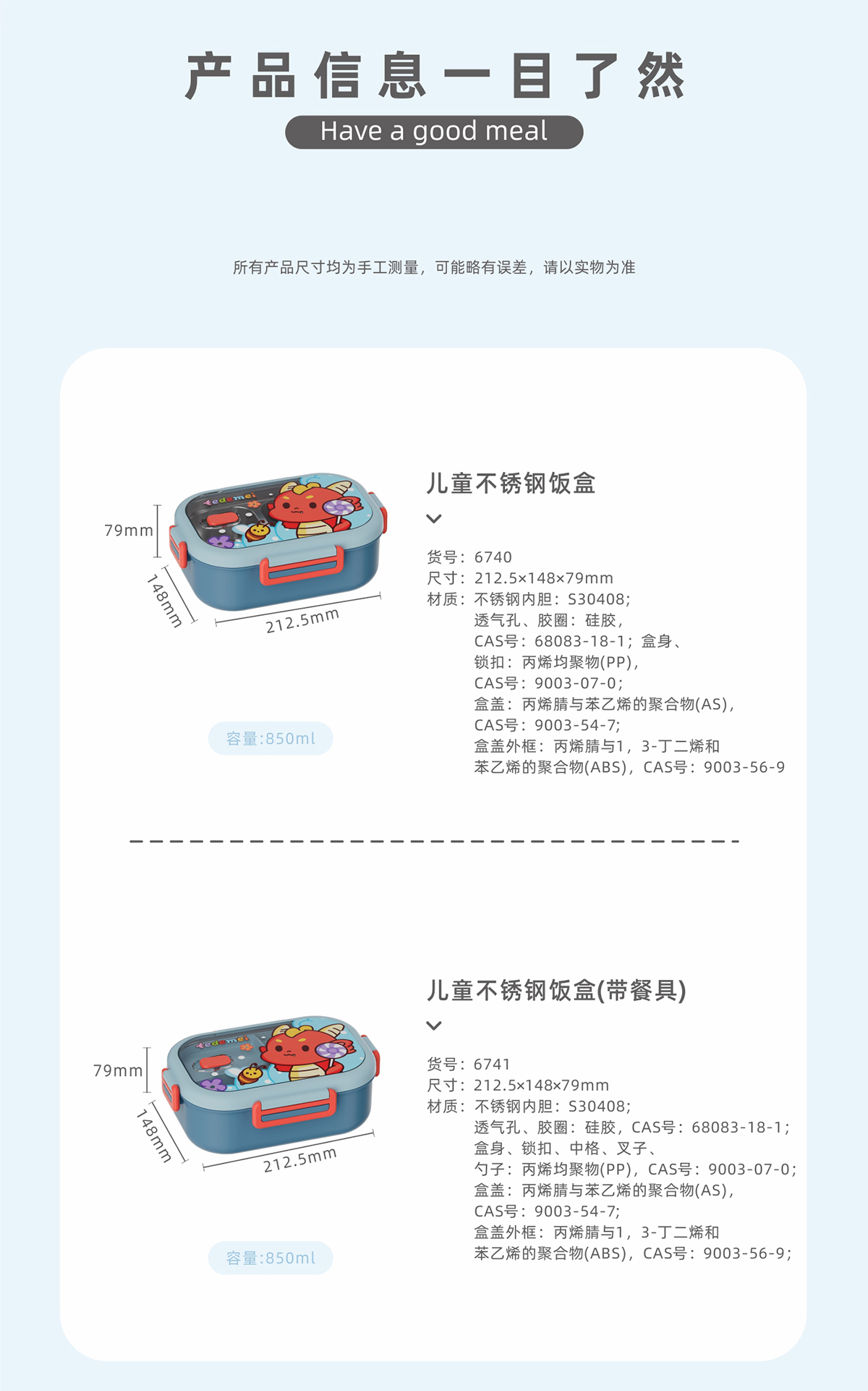 Size: HM-6740(不帶餐具):213*148*79mm HM-6741(帶餐具):213*148*79mm