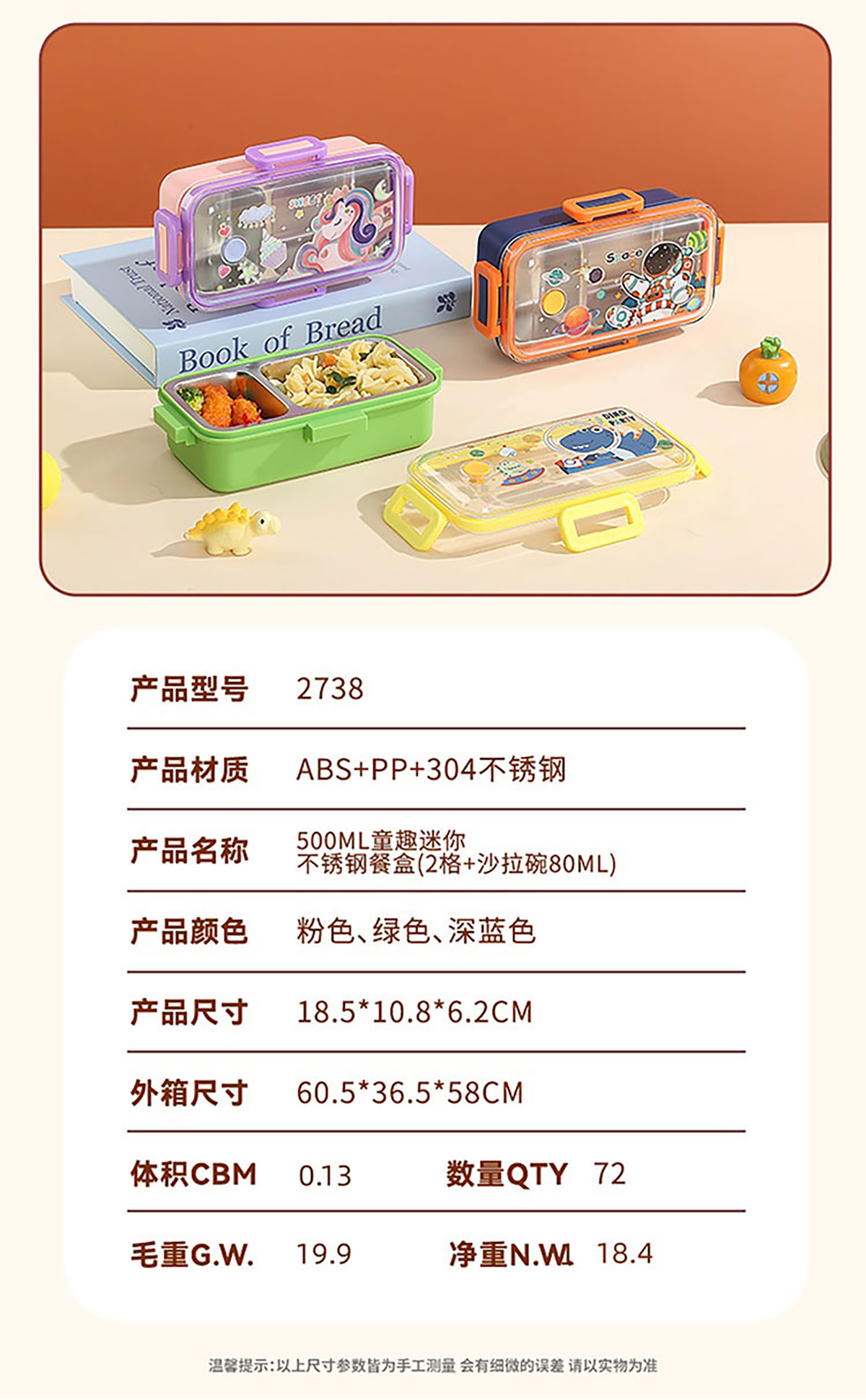 AQX-2738:185*108*62mm/2格500ml+沙拉碗80ml