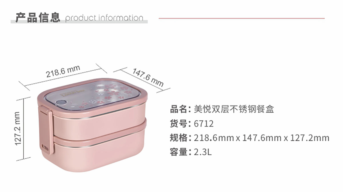 美悅雙層不銹鋼餐盒 2300ml(附送餐盒袋)