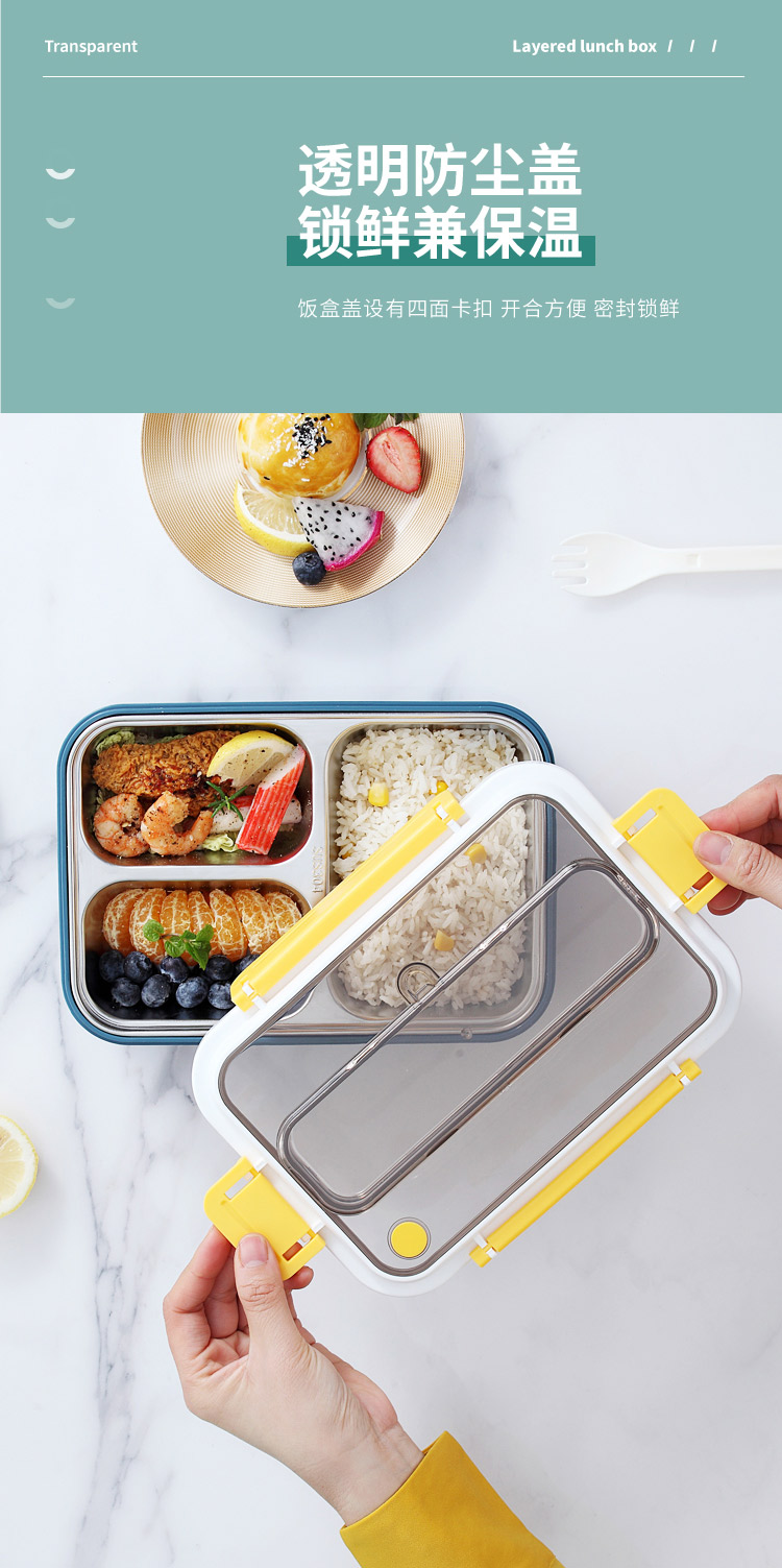 風(fēng)味餐具格不銹鋼四扣飯盒