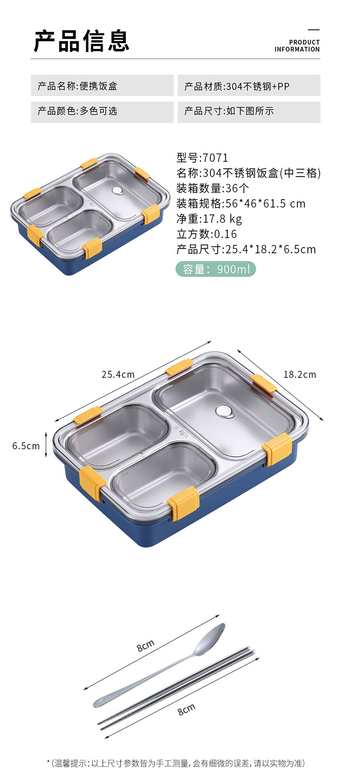 304不銹鋼飯盒中三格/900ml