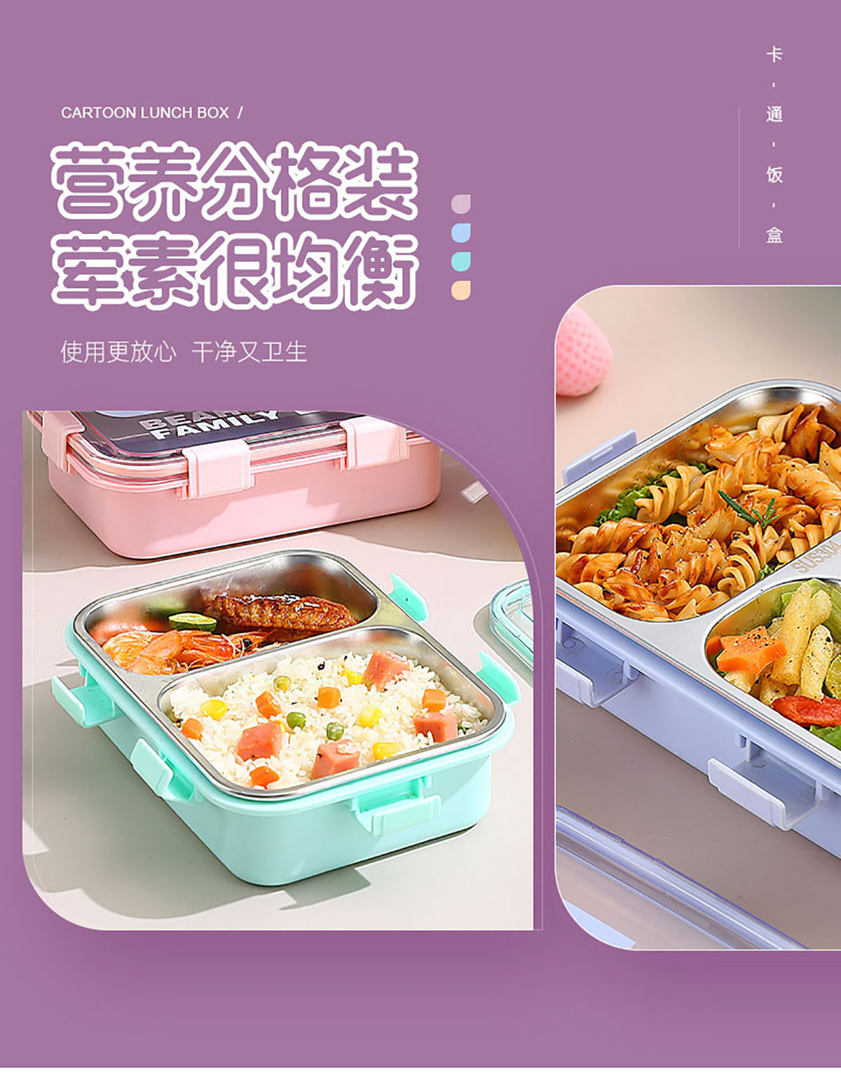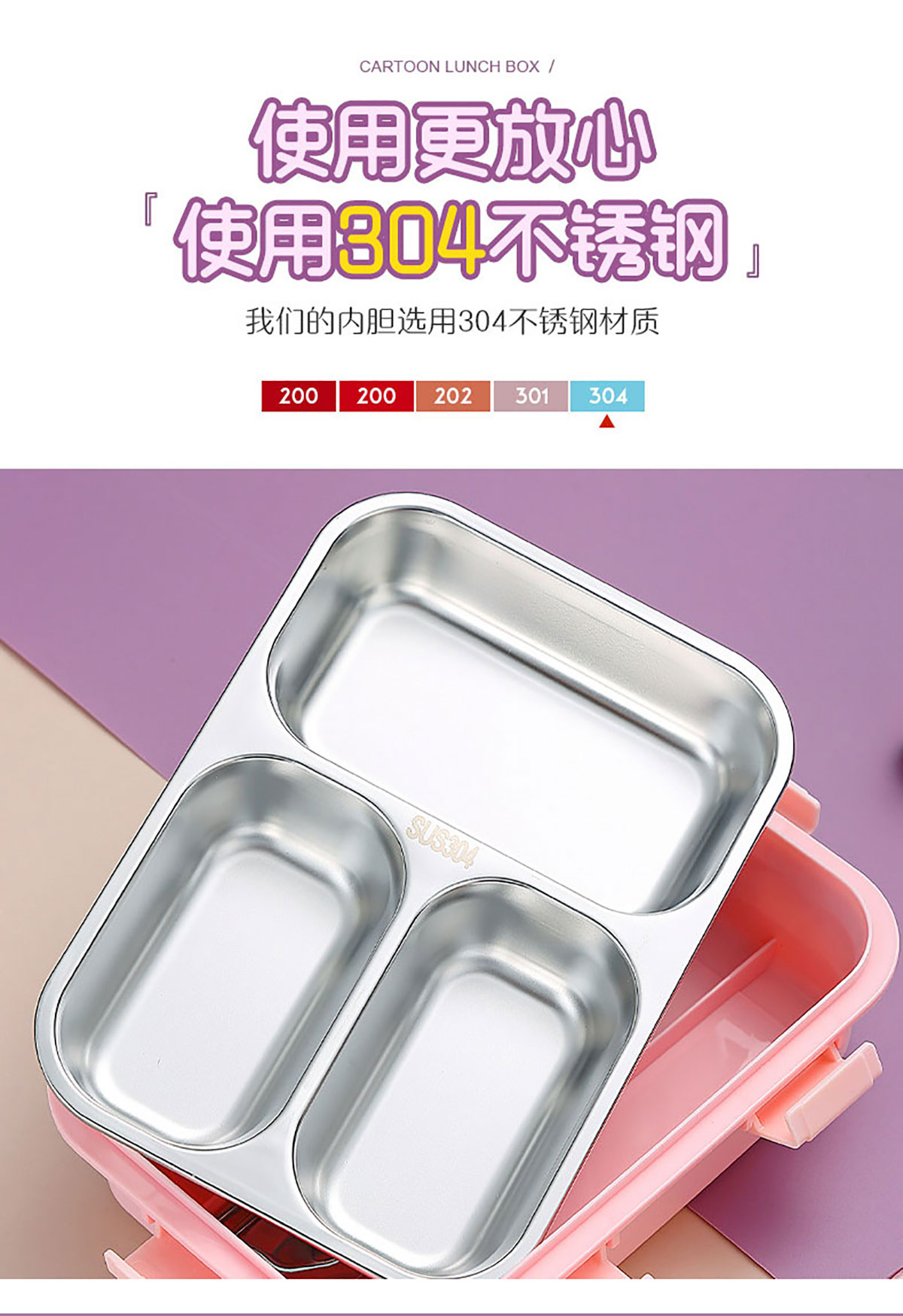 卡通小熊304不銹鋼飯盒(一格 850ml/二格800ml/三格750ml/三格+碗700ml+150ml)