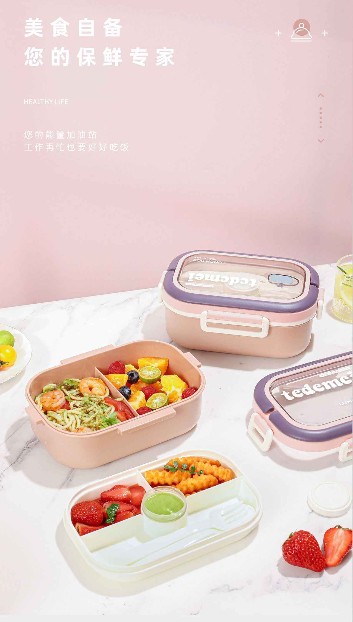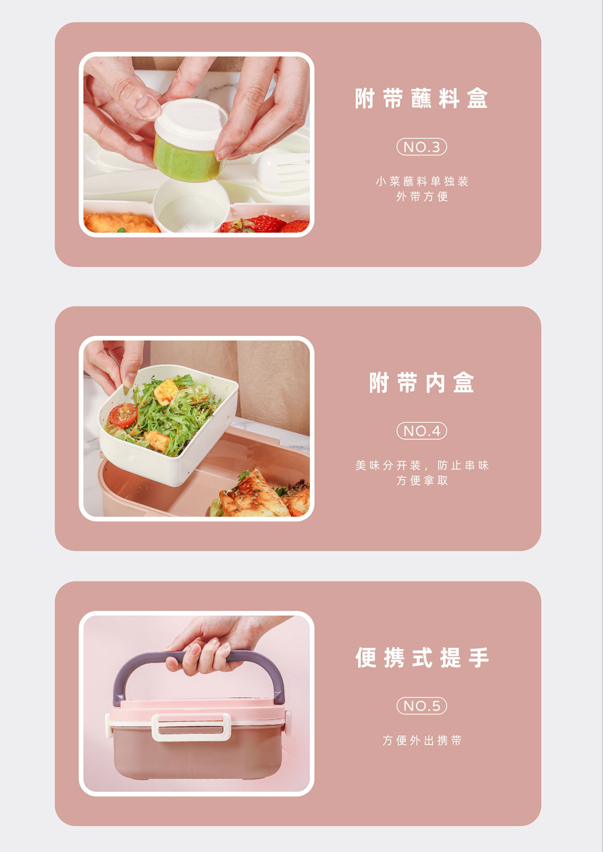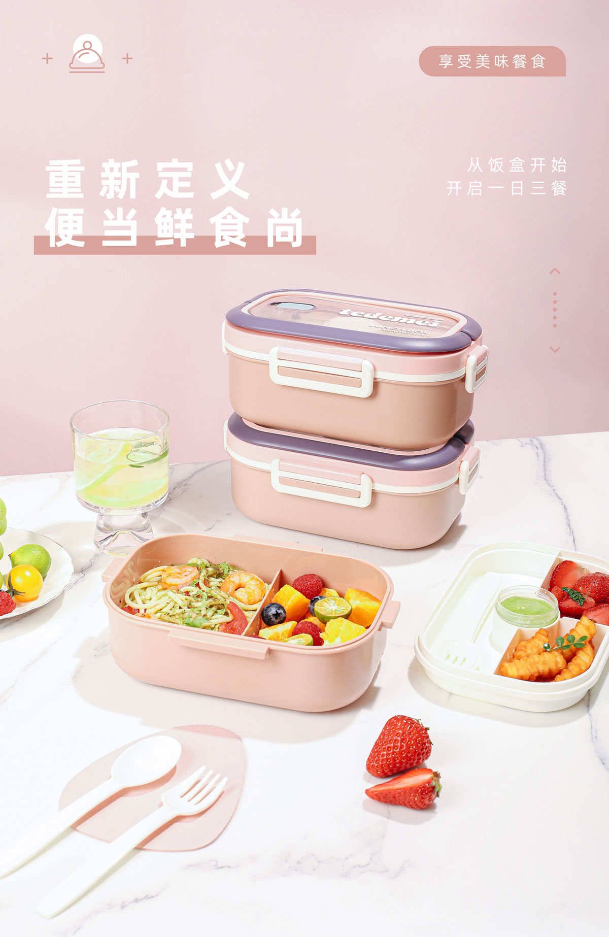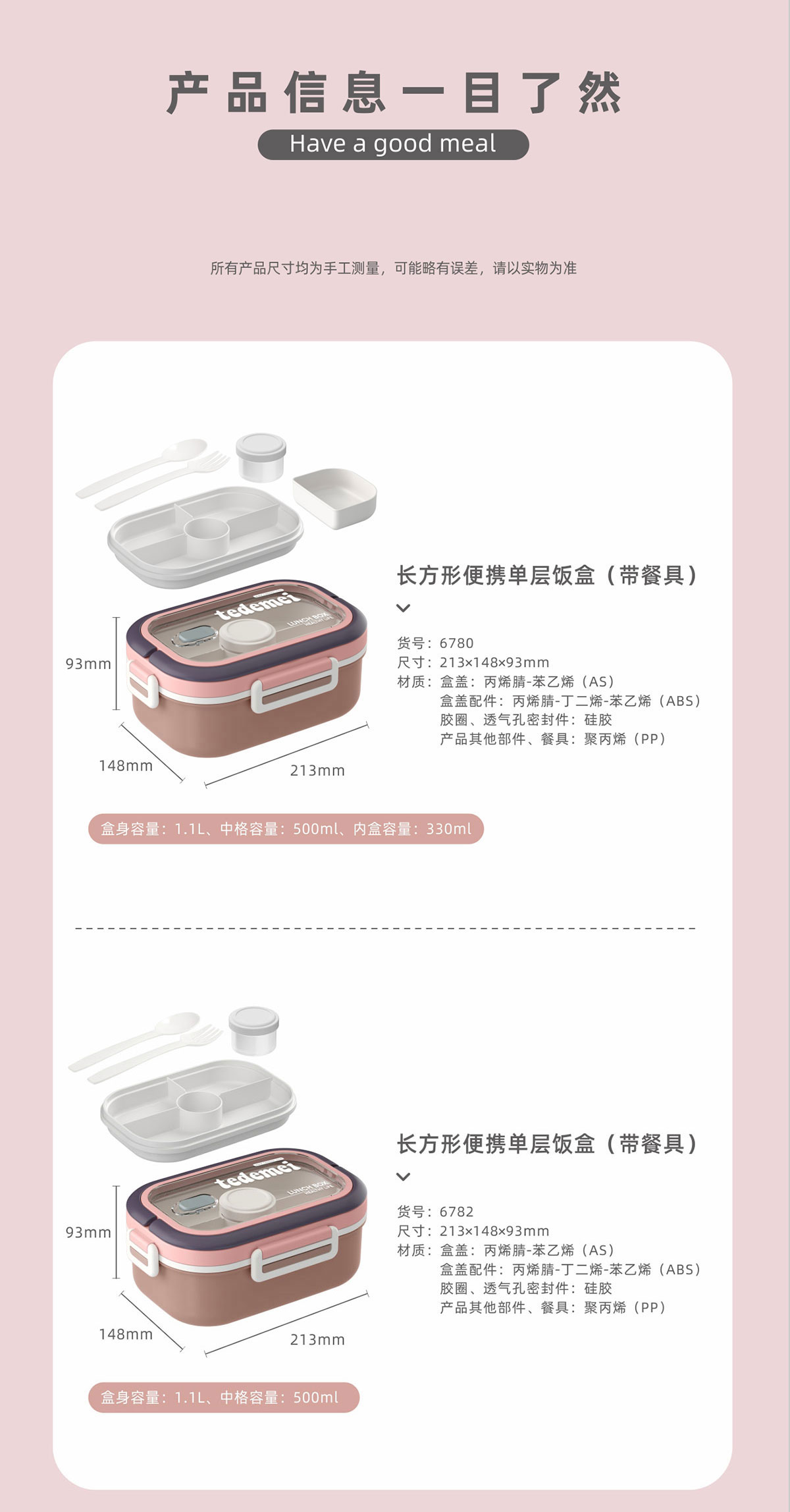 長(zhǎng)方形便攜單層飯盒(帶餐具)1.1L+500ml+330ml/1.1L+500ml