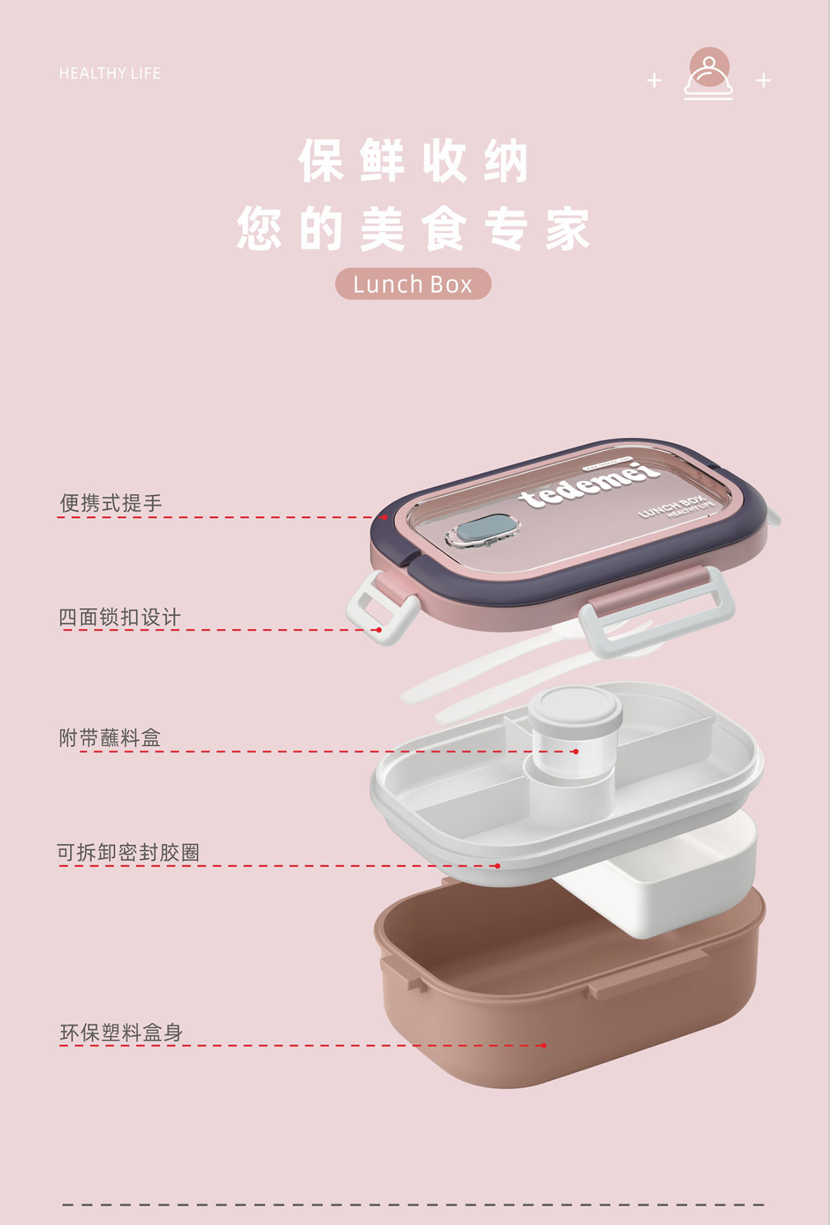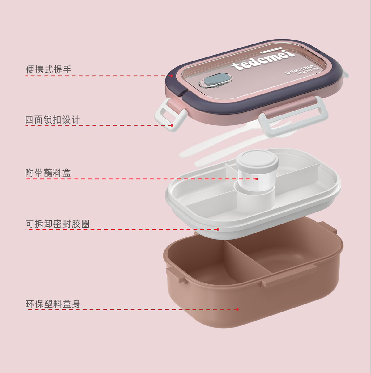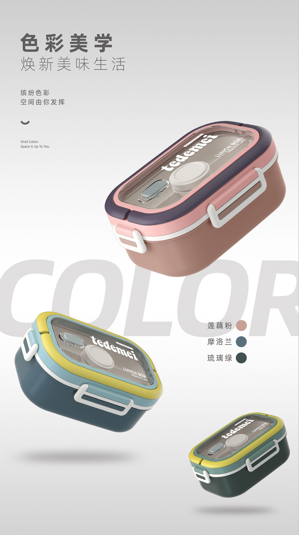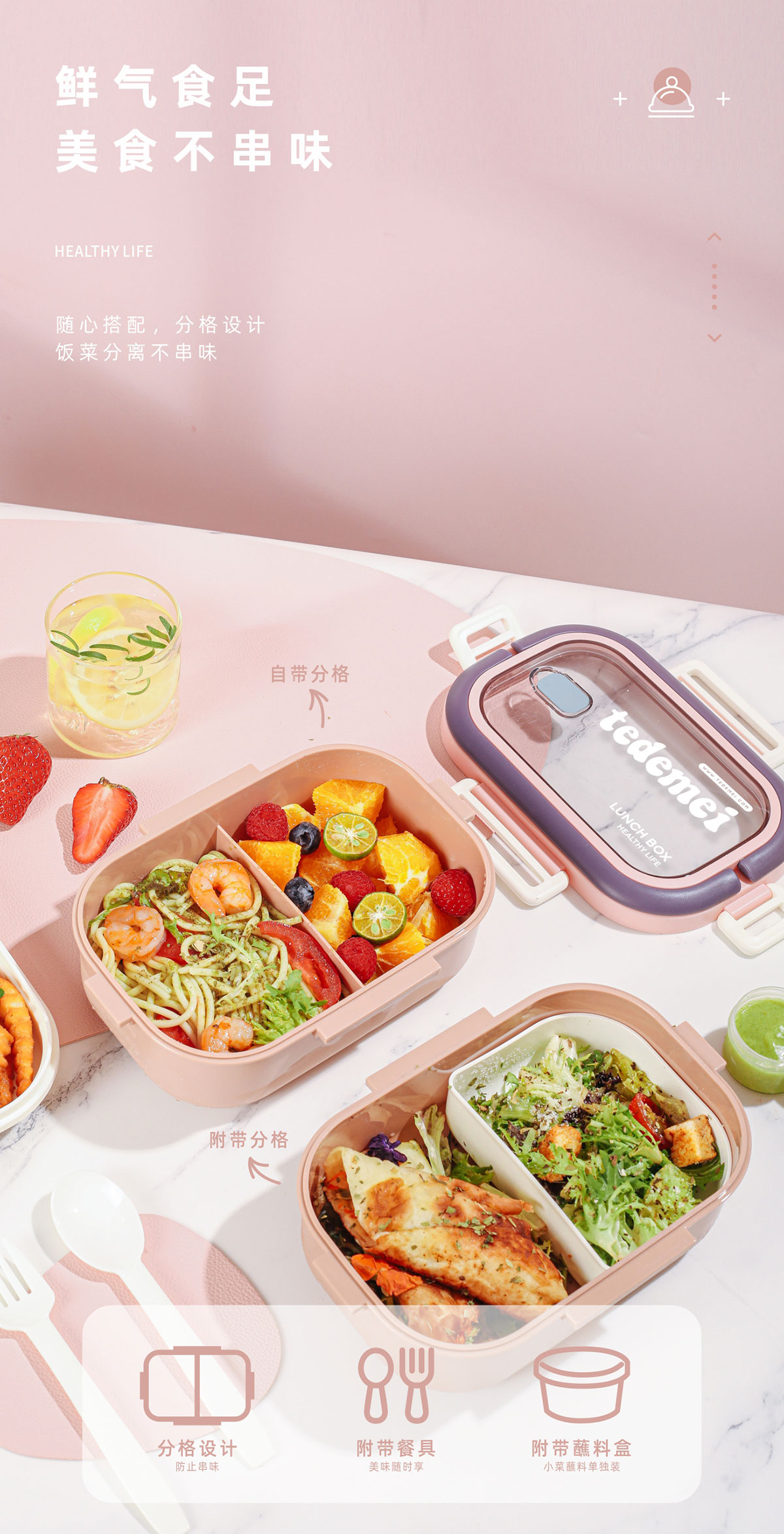 長(zhǎng)方形便攜單層飯盒(帶餐具)1.1L+500ml+330ml/1.1L+500ml