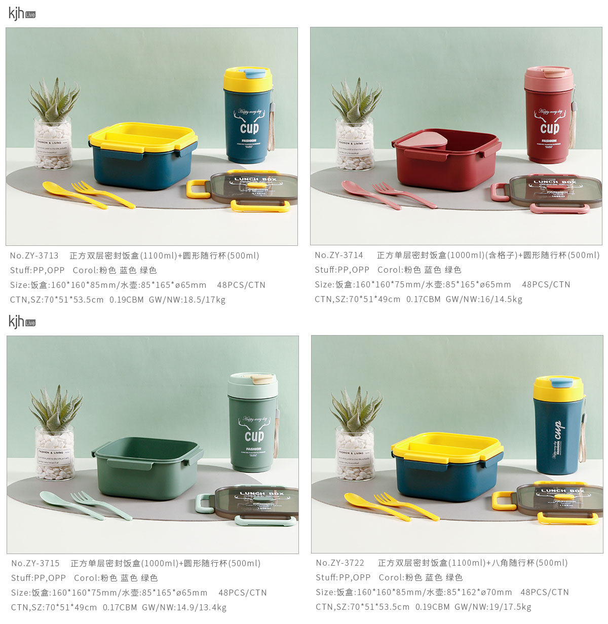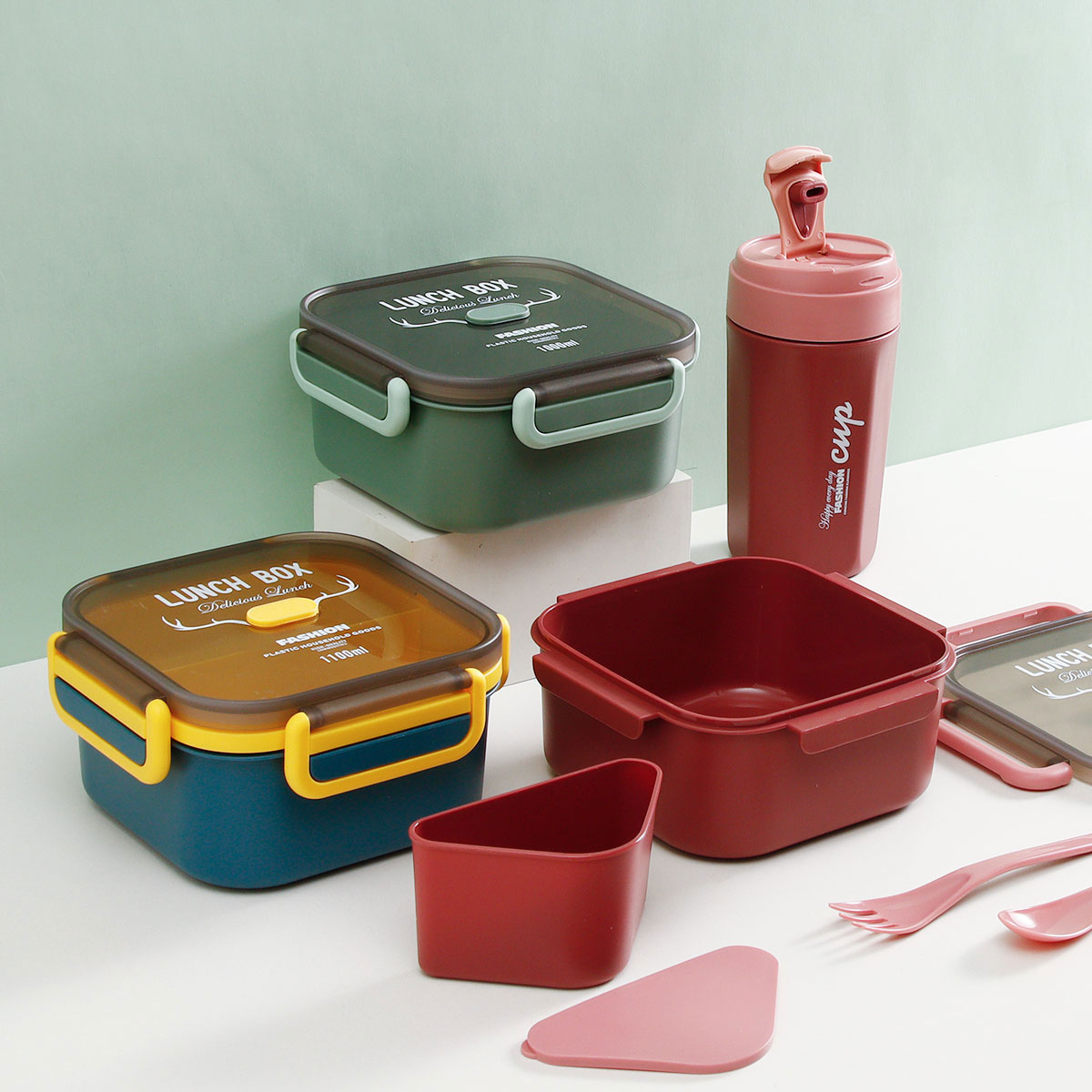正方雙層/單層密封飯盒+圓形/八角隨行杯