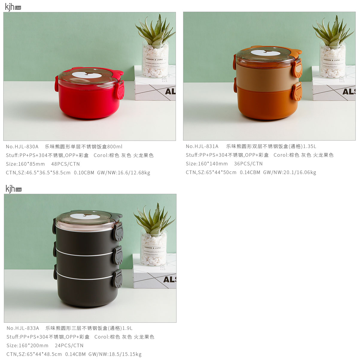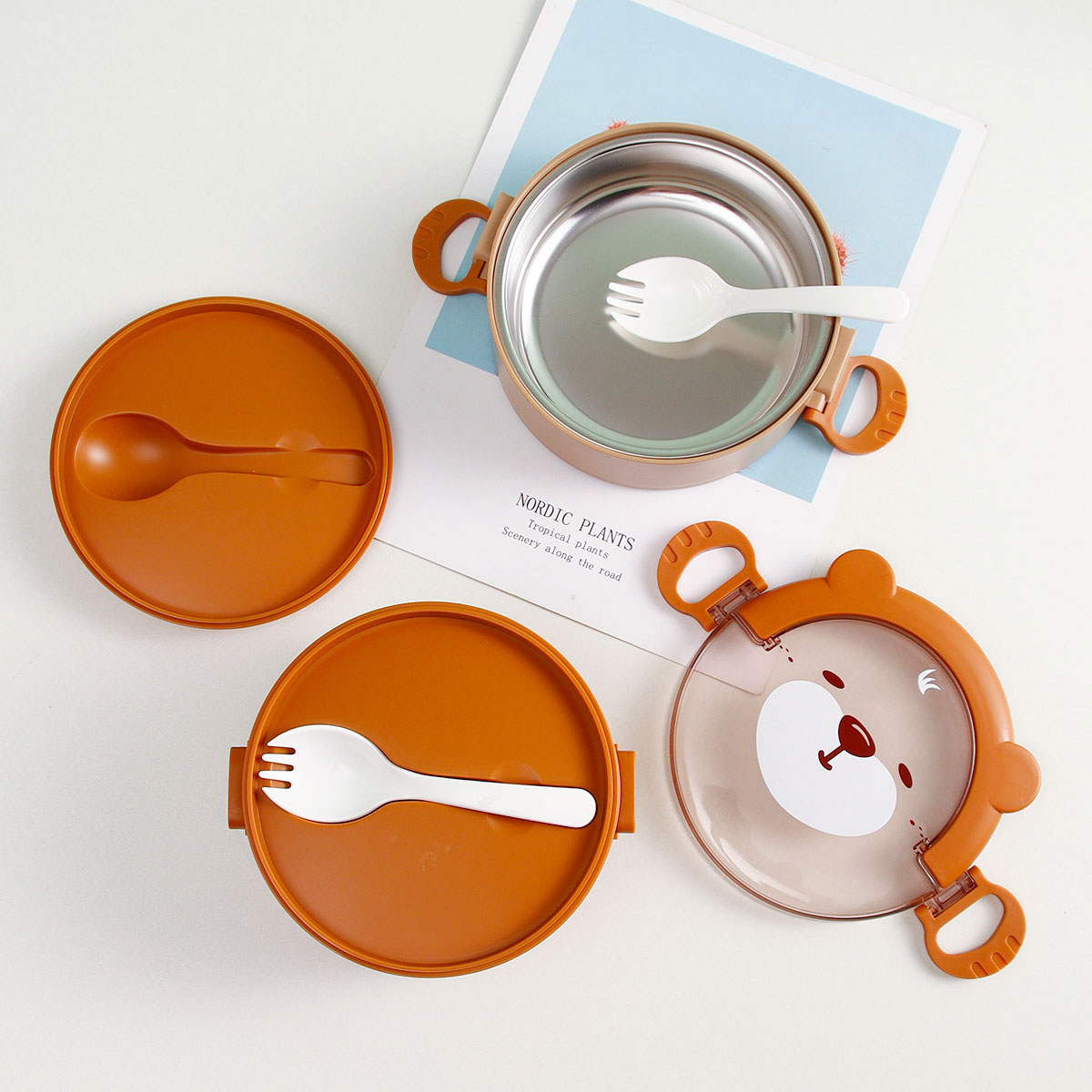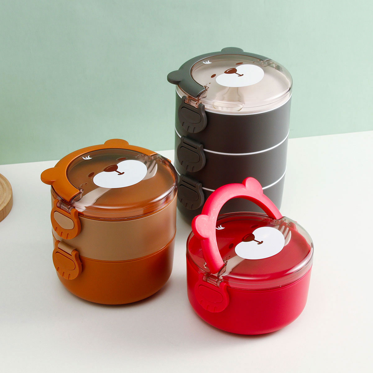 樂(lè)味熊圓形單層/雙層/三層不銹鋼飯盒