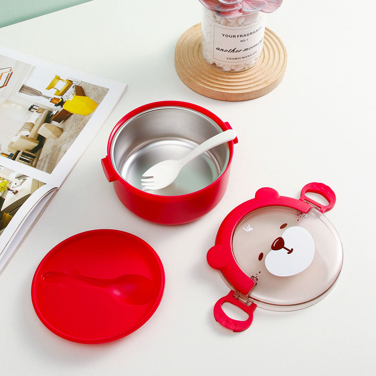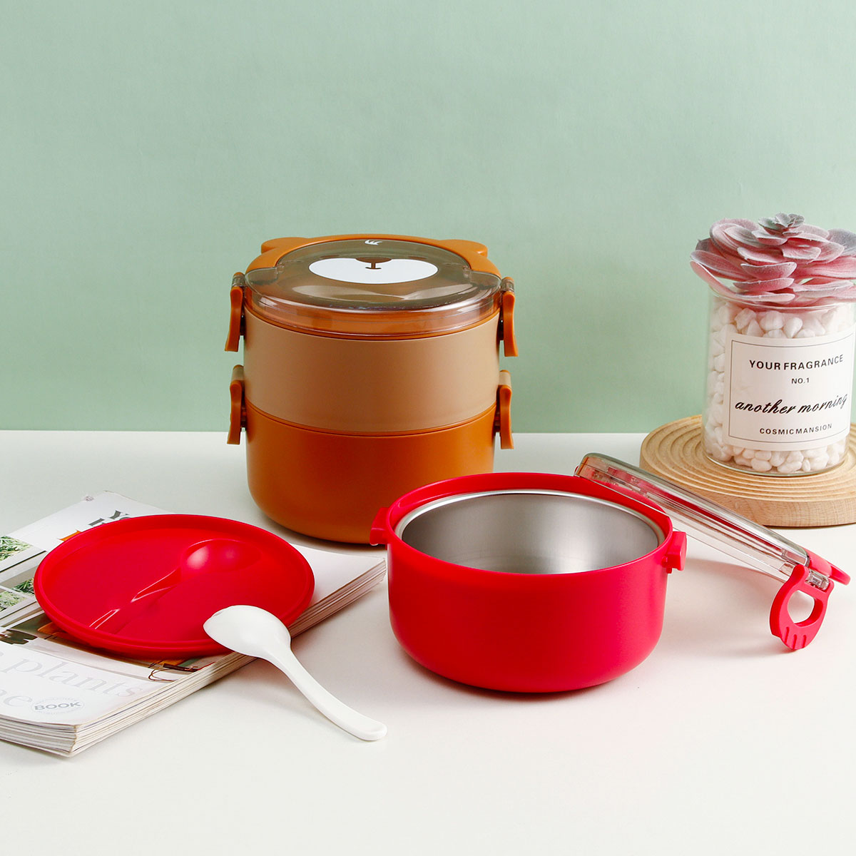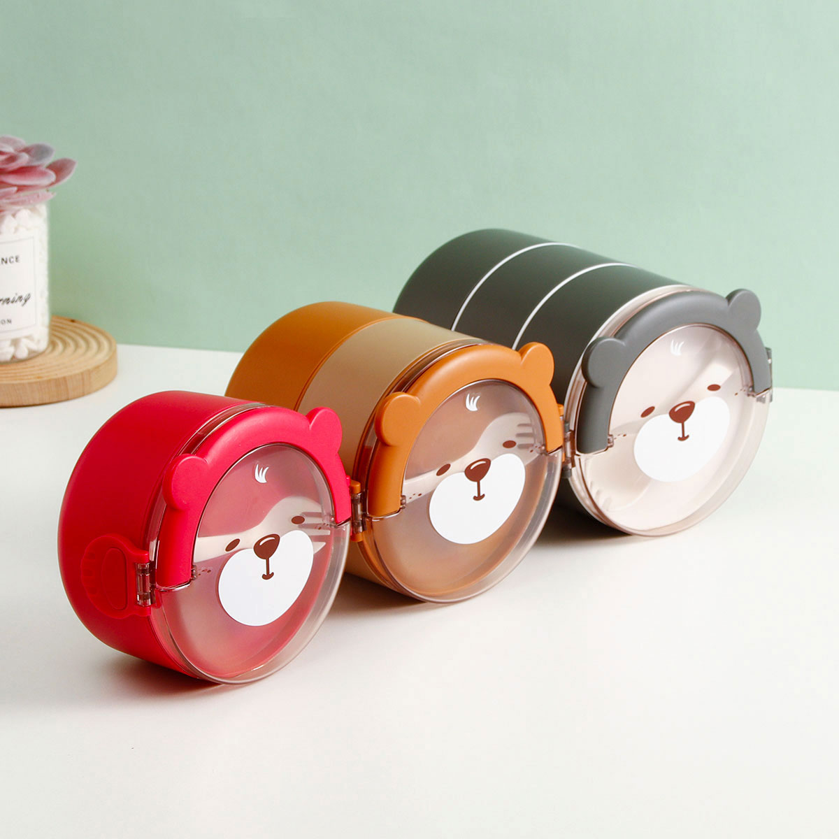 樂(lè)味熊圓形單層/雙層/三層不銹鋼飯盒