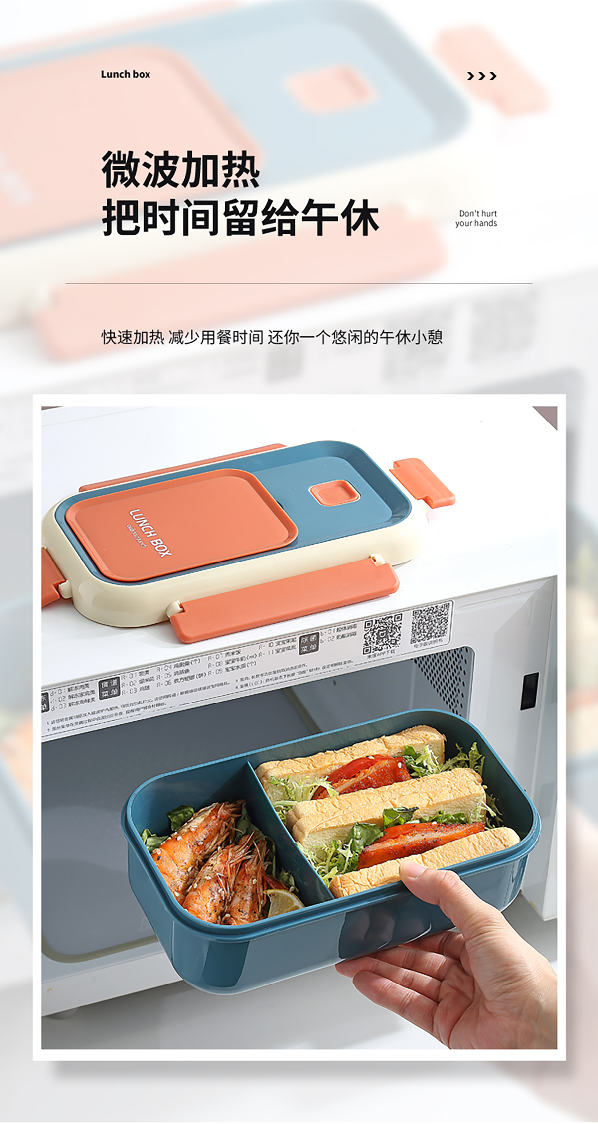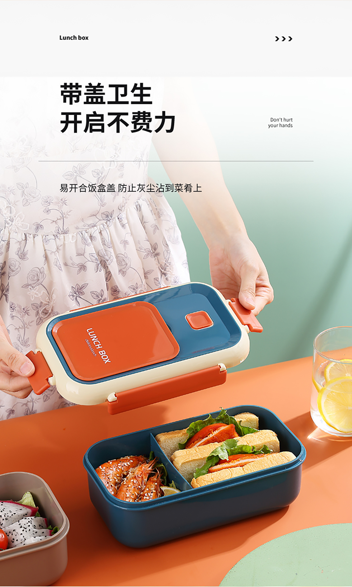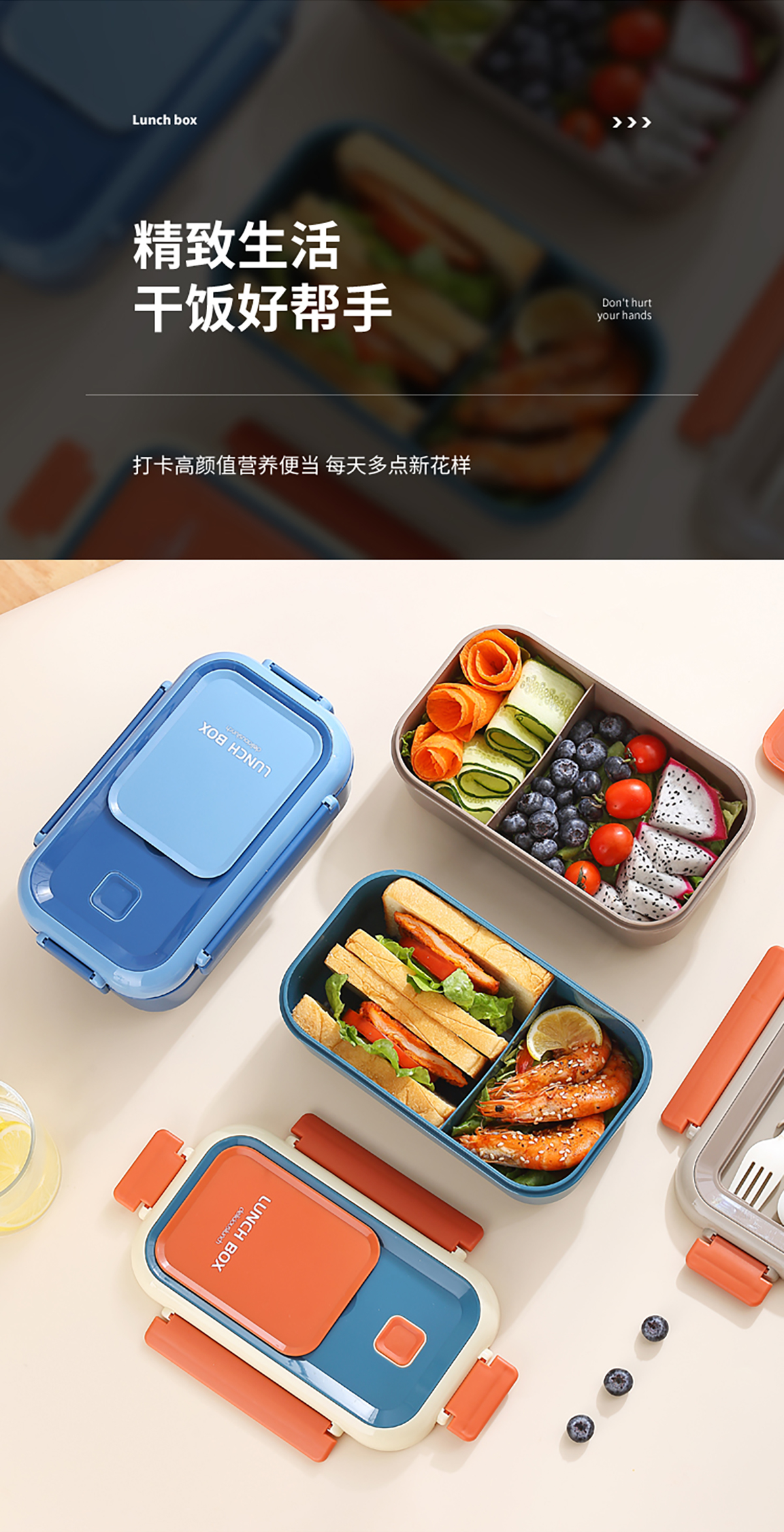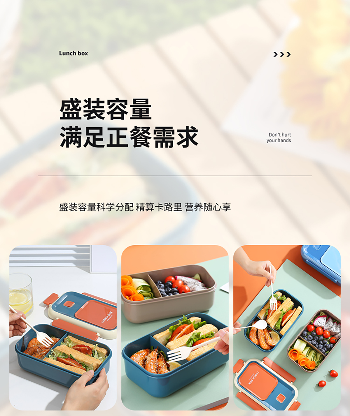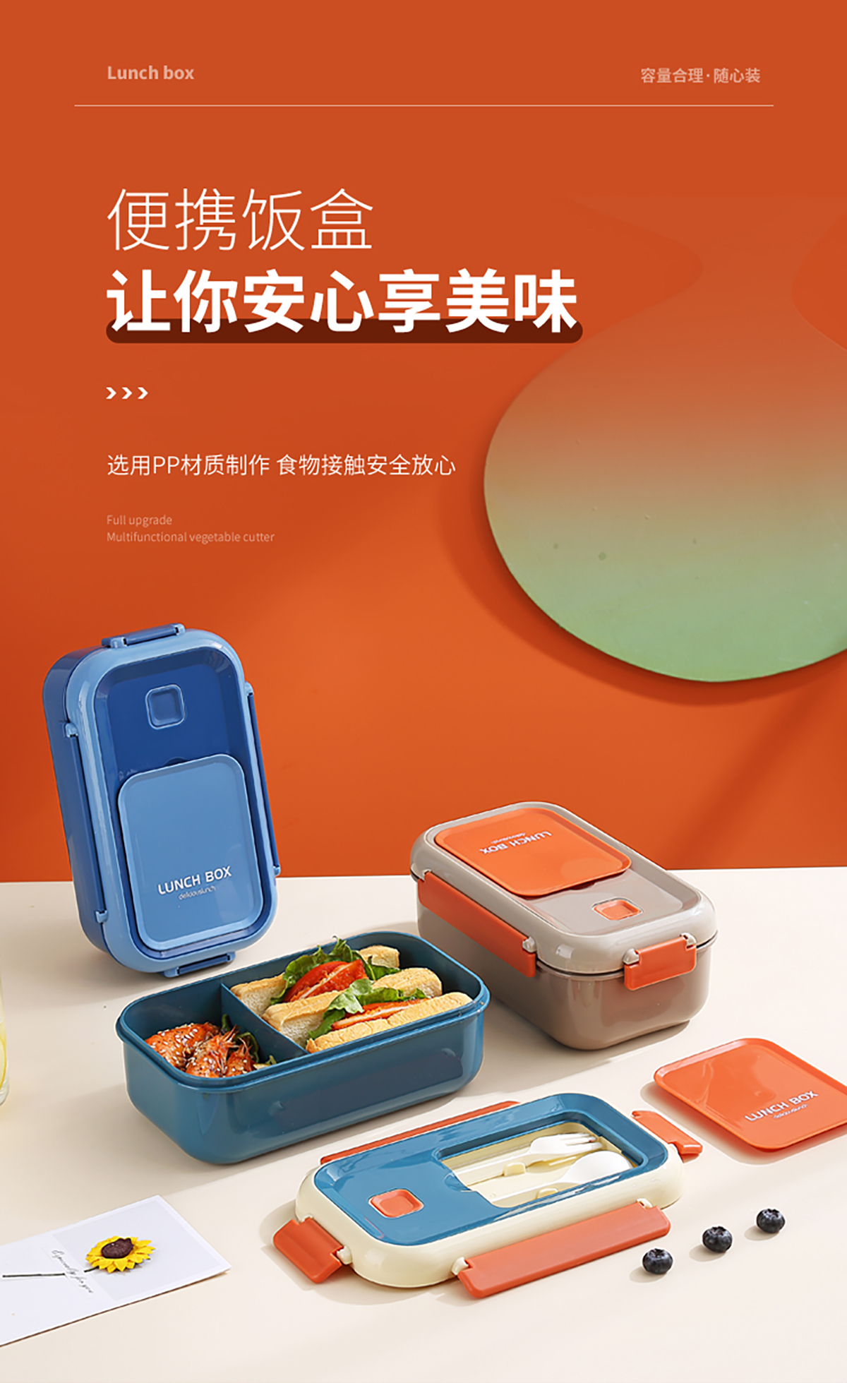 長(zhǎng)方間色飯盒1100ml