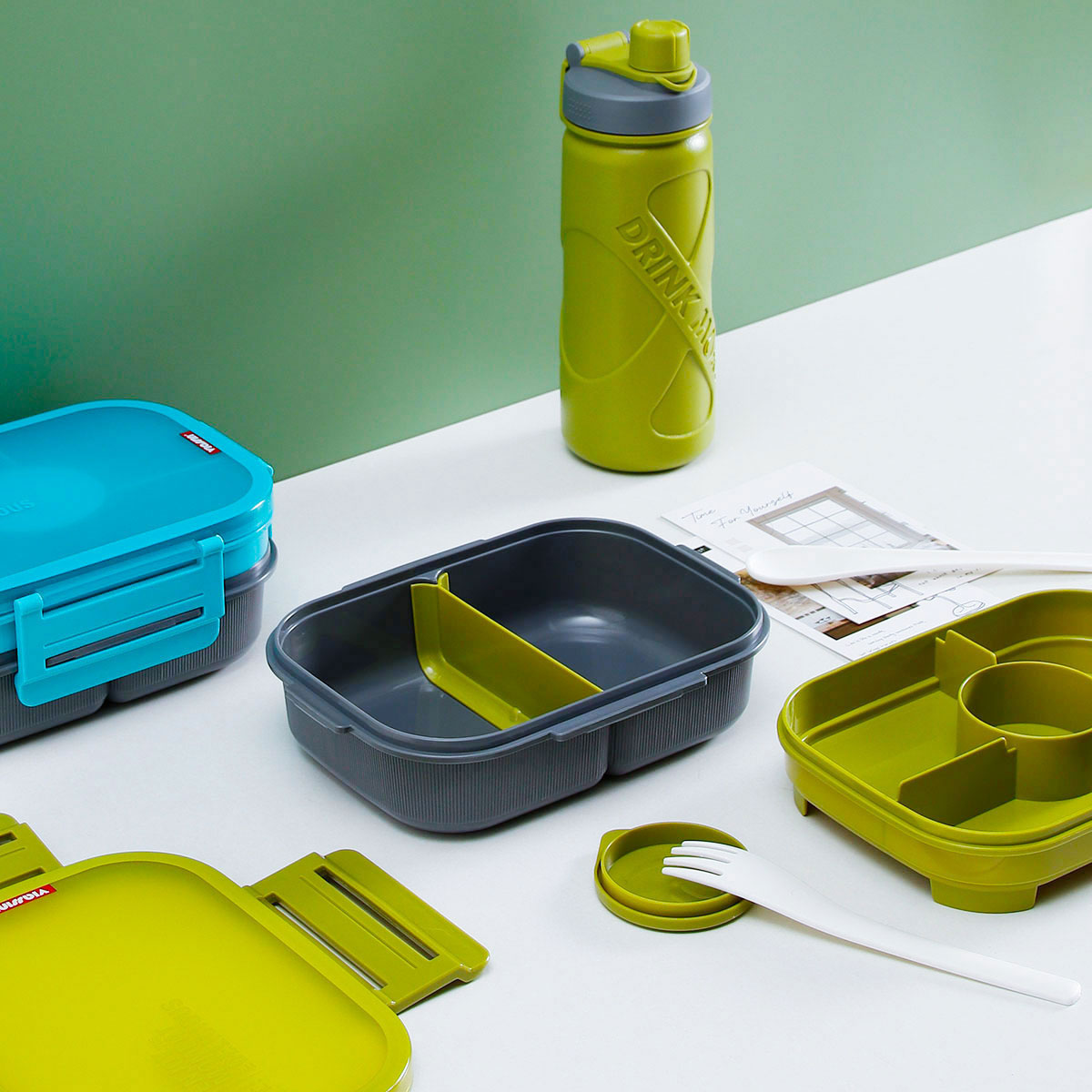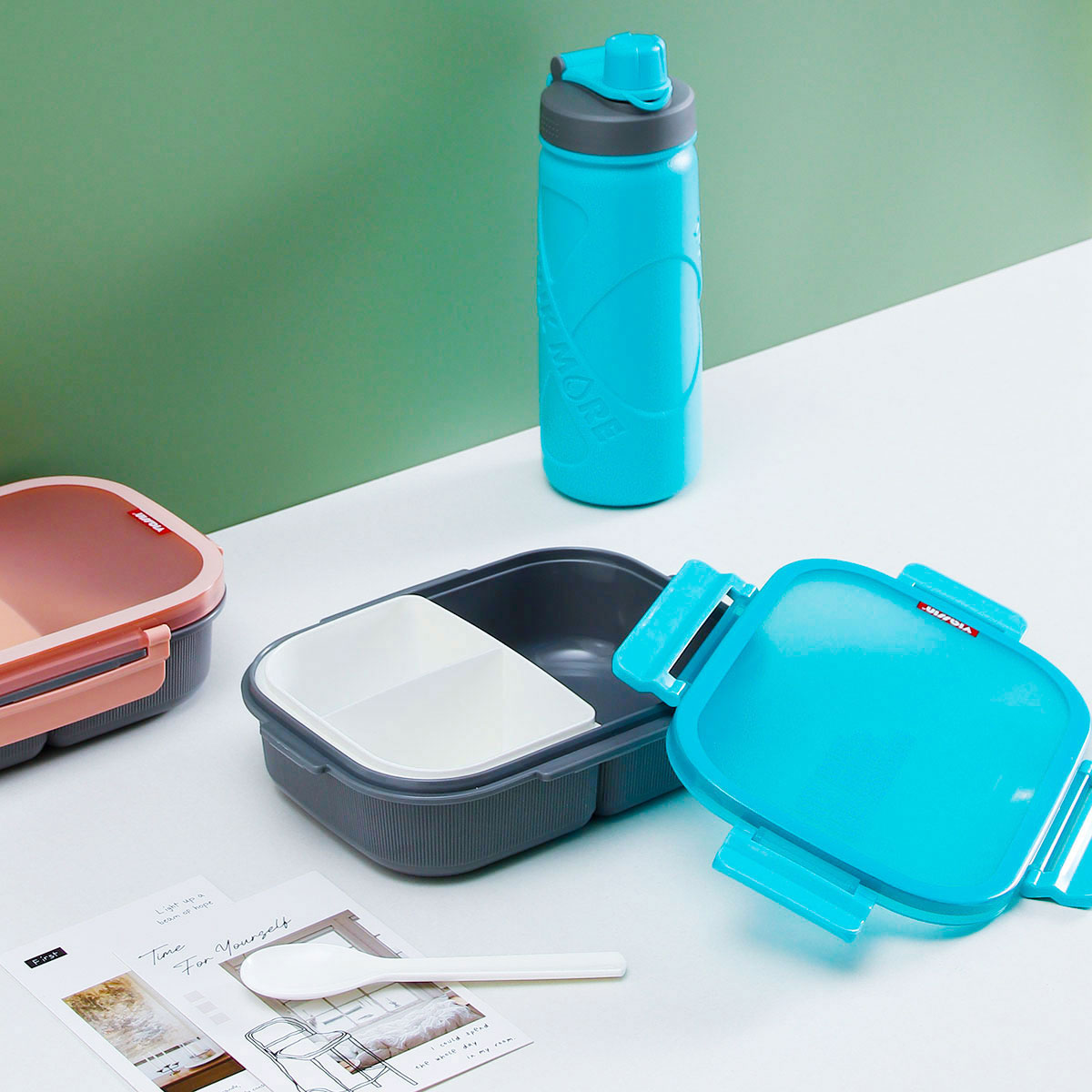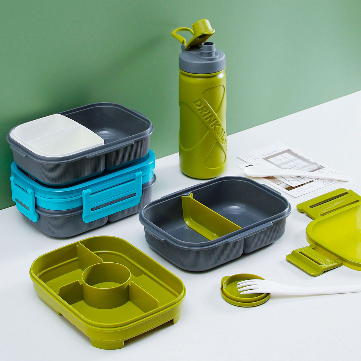 寰彩密封單層3格/雙層6格飯盒(長方款)+運動水壺套裝/單個