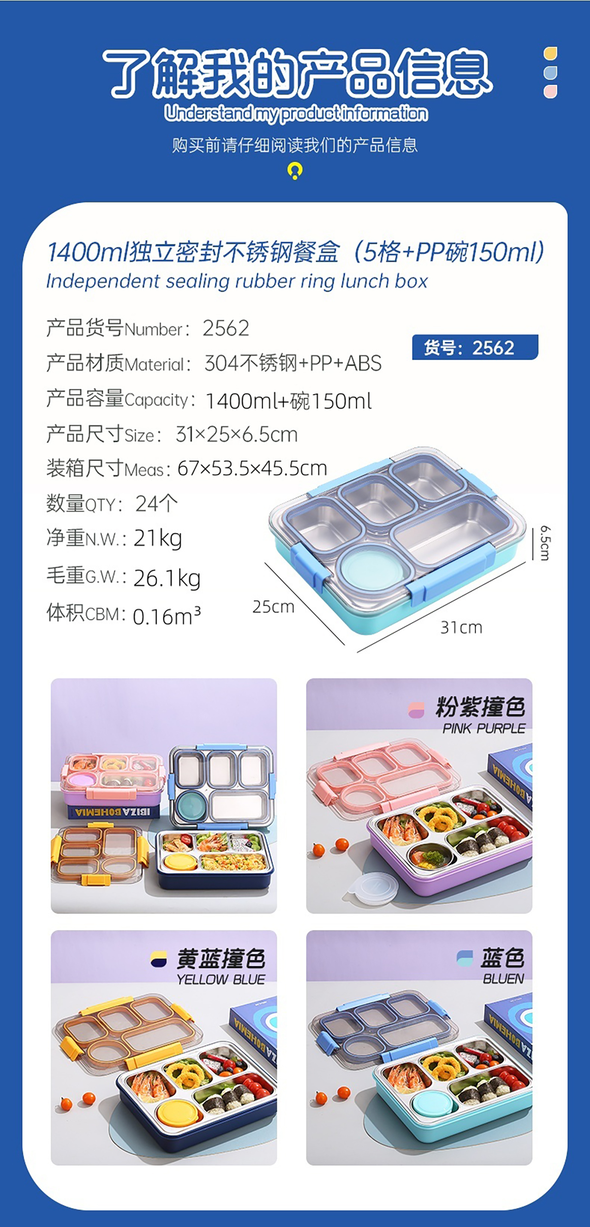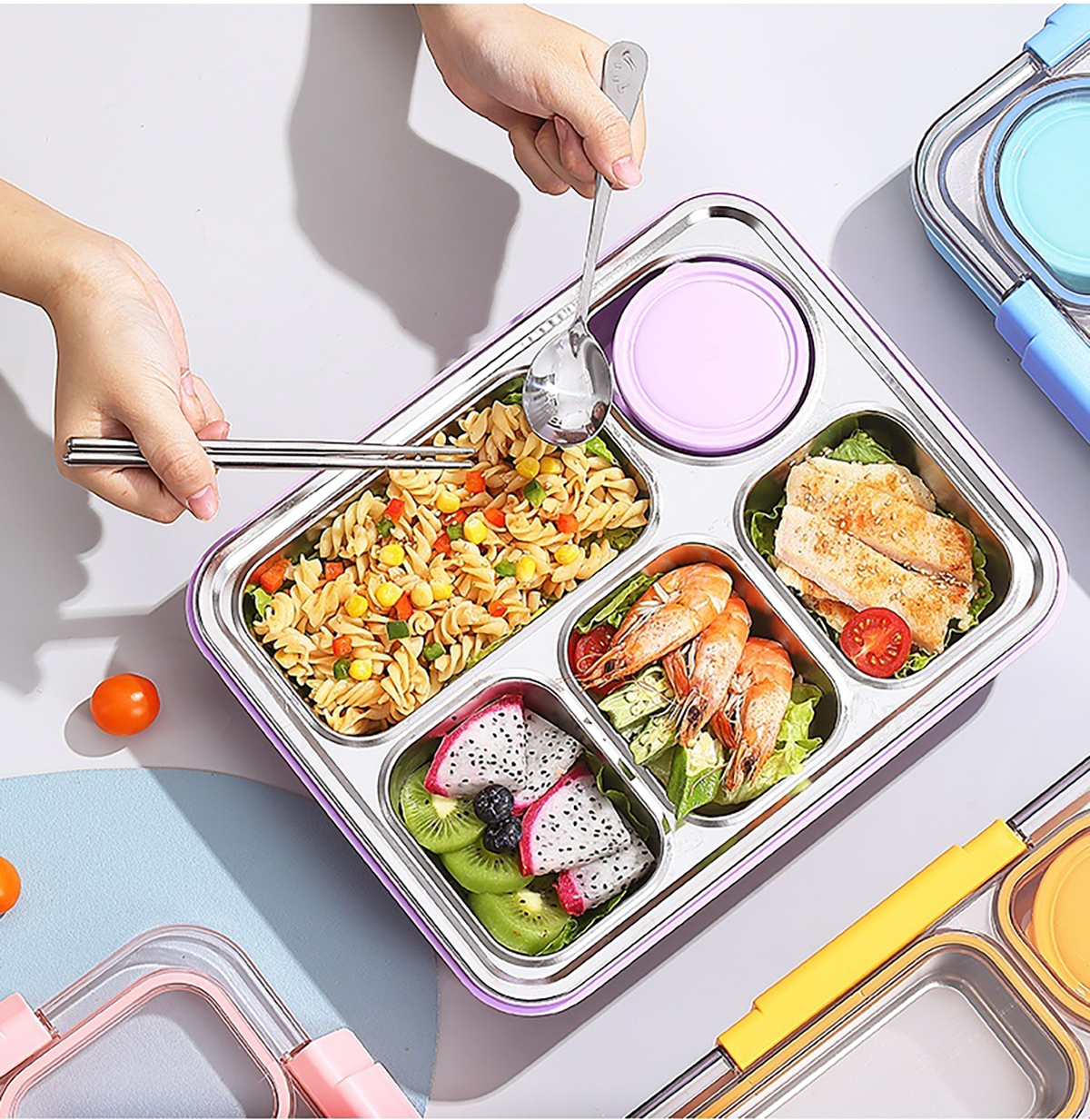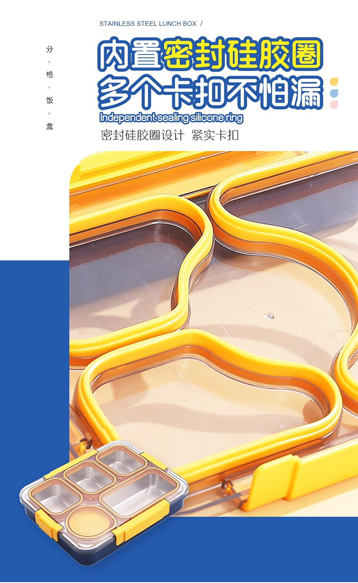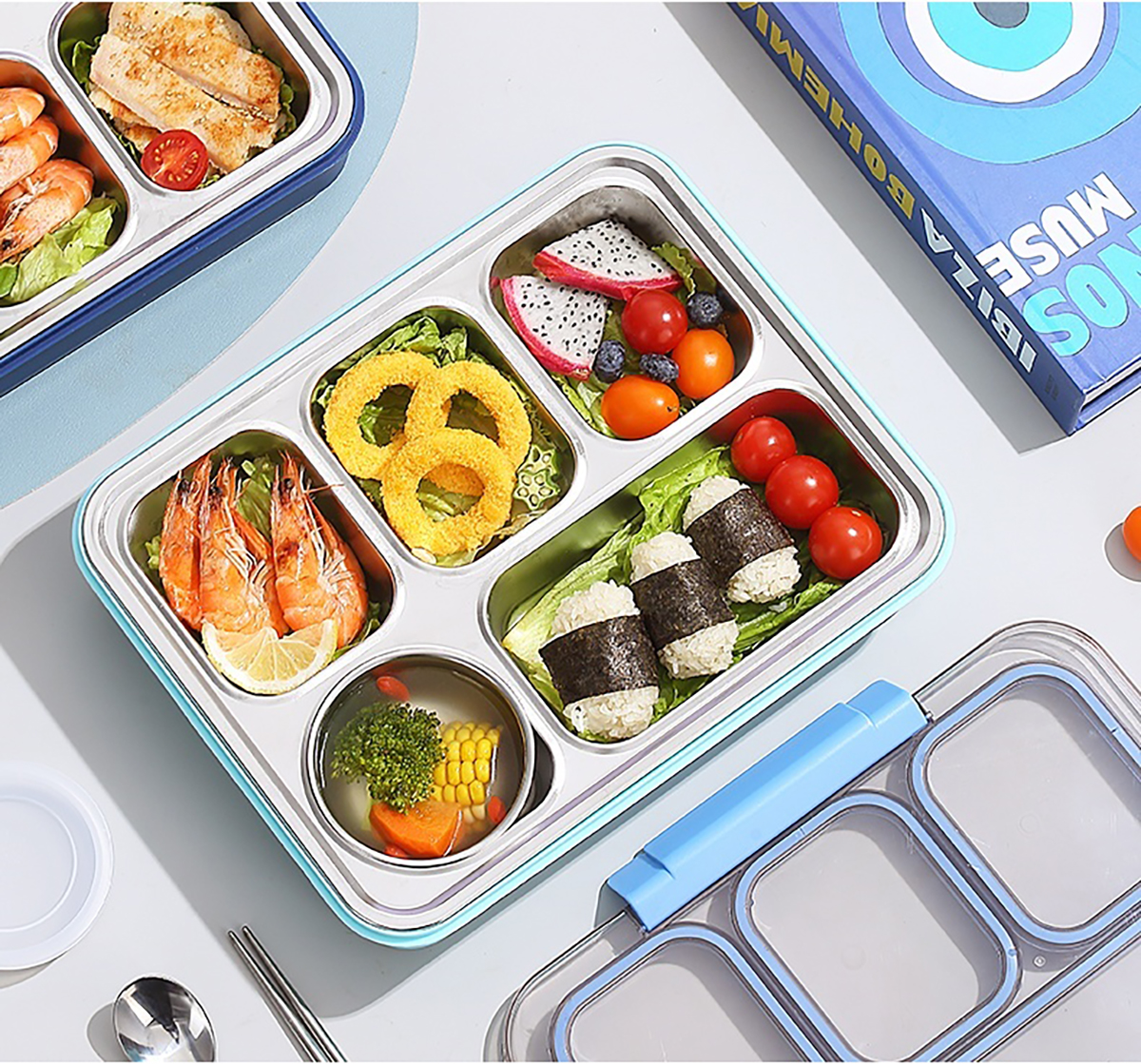 1400ml獨立密封不銹鋼餐盒(5格+不銹鋼碗150ml+不銹鋼勺筷)