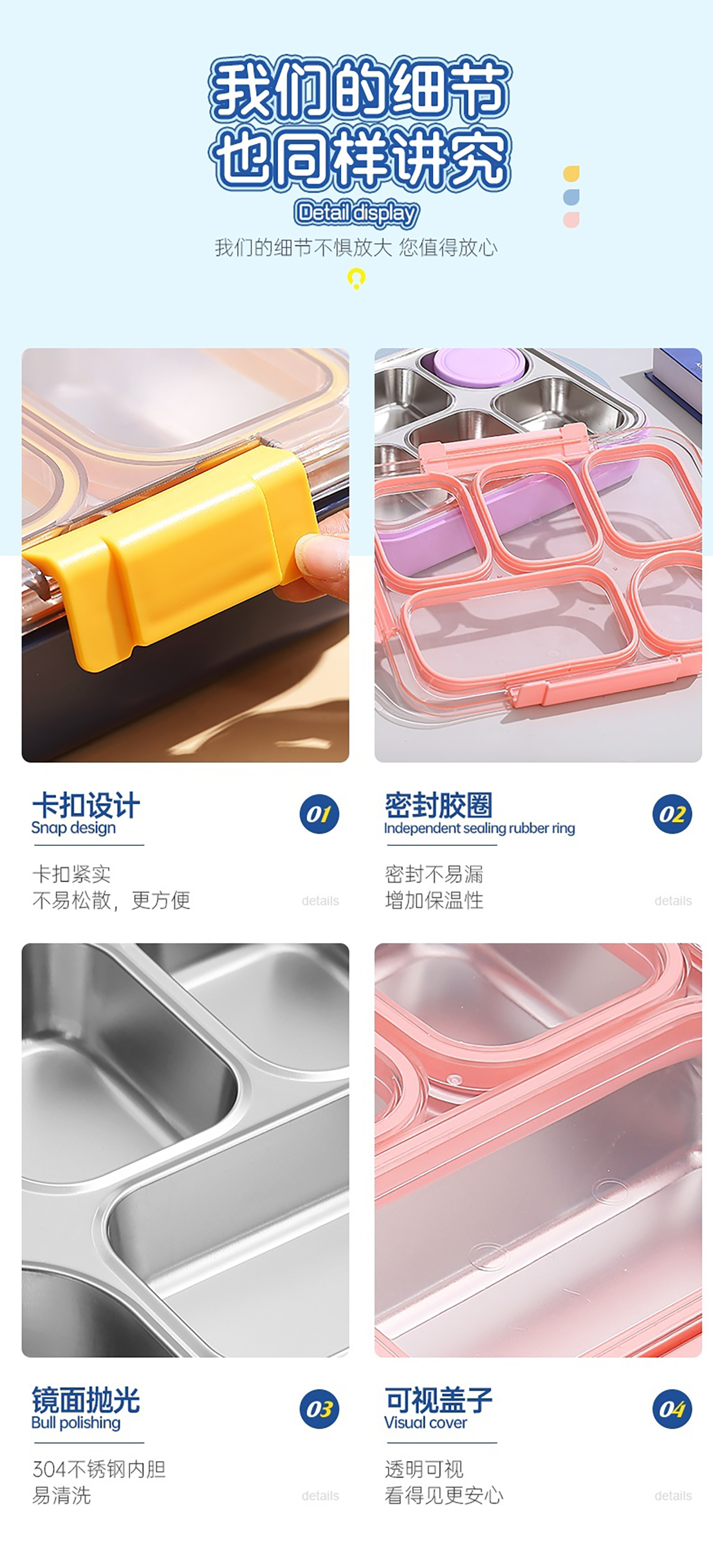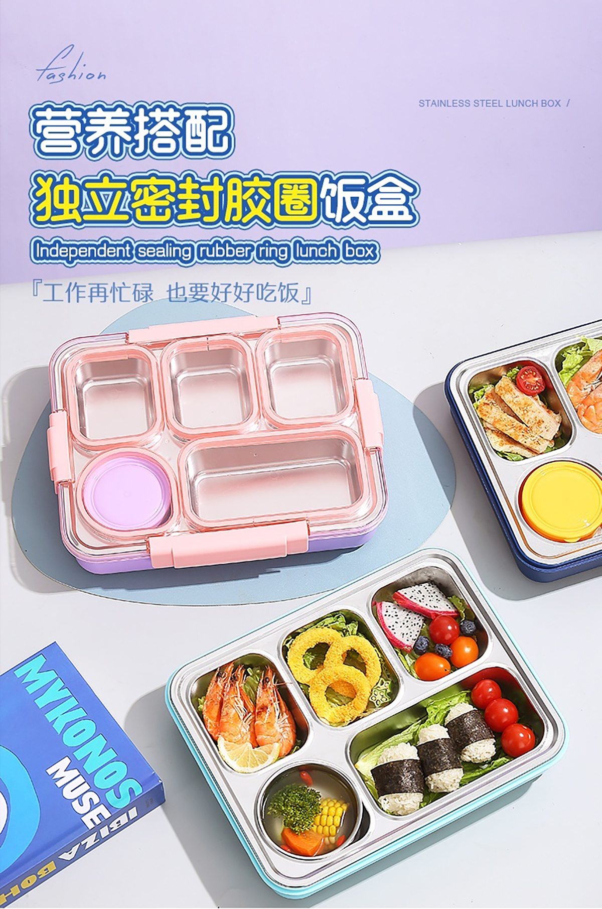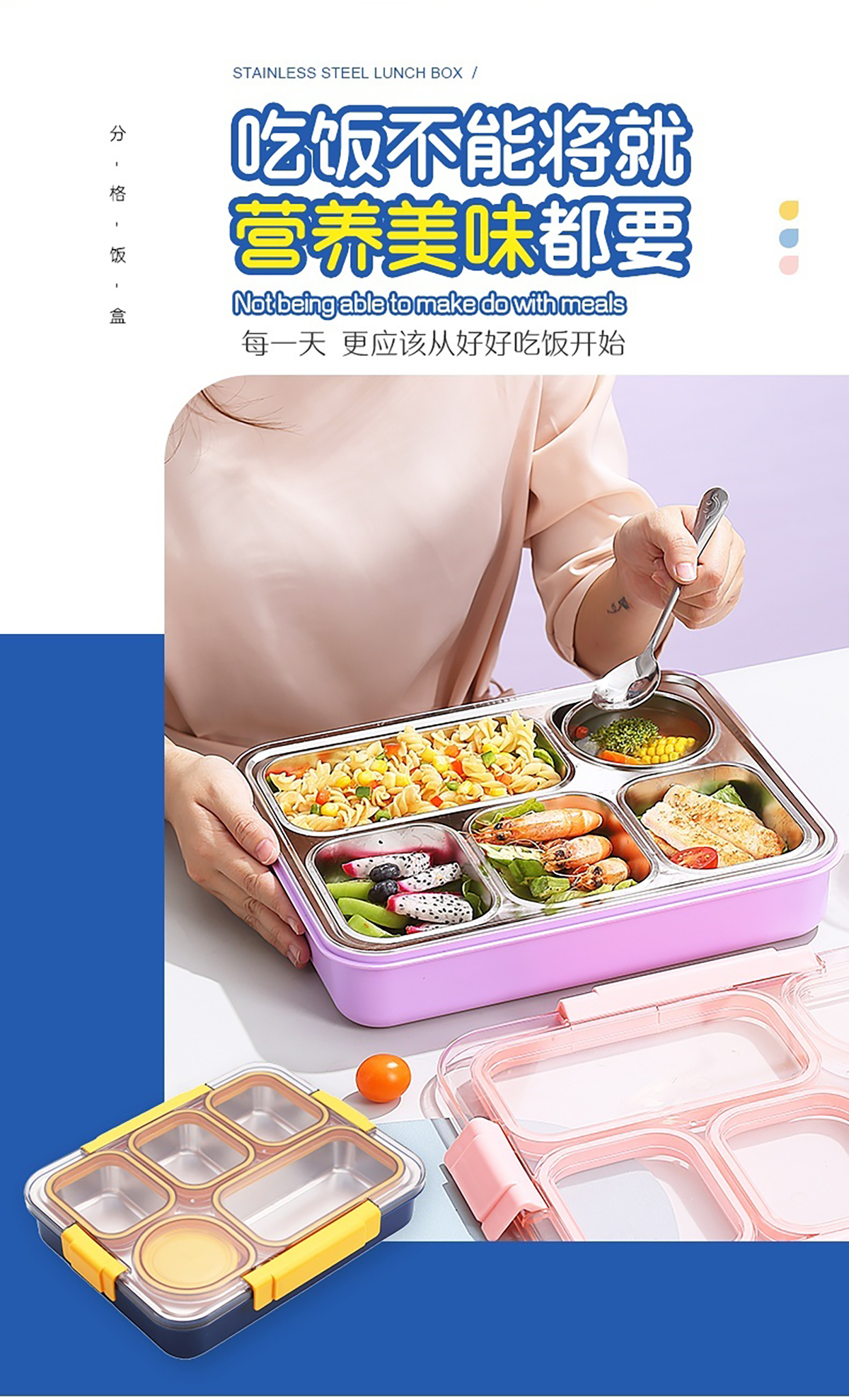 1400ml獨立密封不銹鋼餐盒(5格+不銹鋼碗150ml+不銹鋼勺筷)