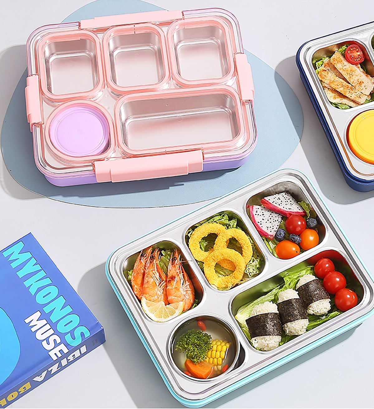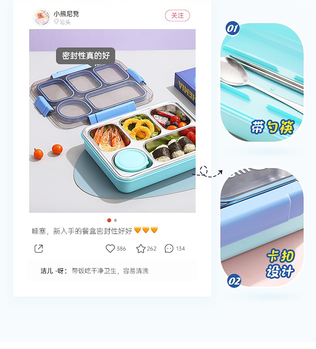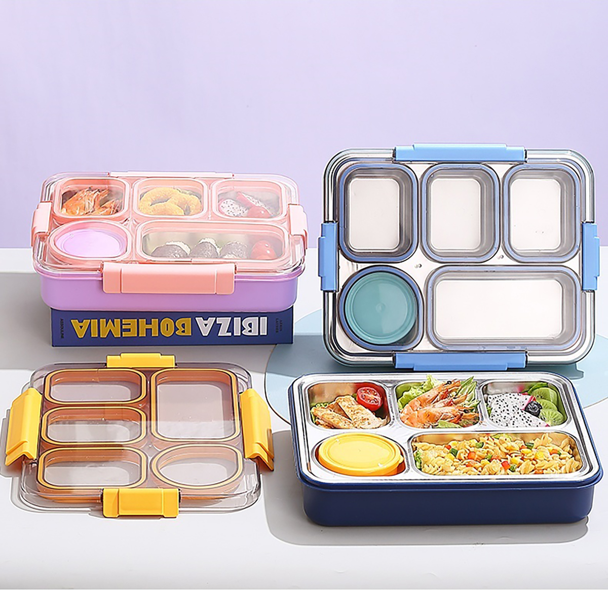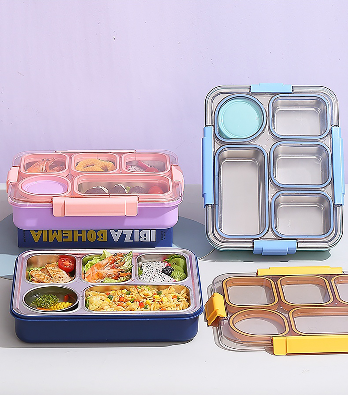 1400ml獨立密封不銹鋼餐盒(5格+不銹鋼碗150ml+不銹鋼勺筷)