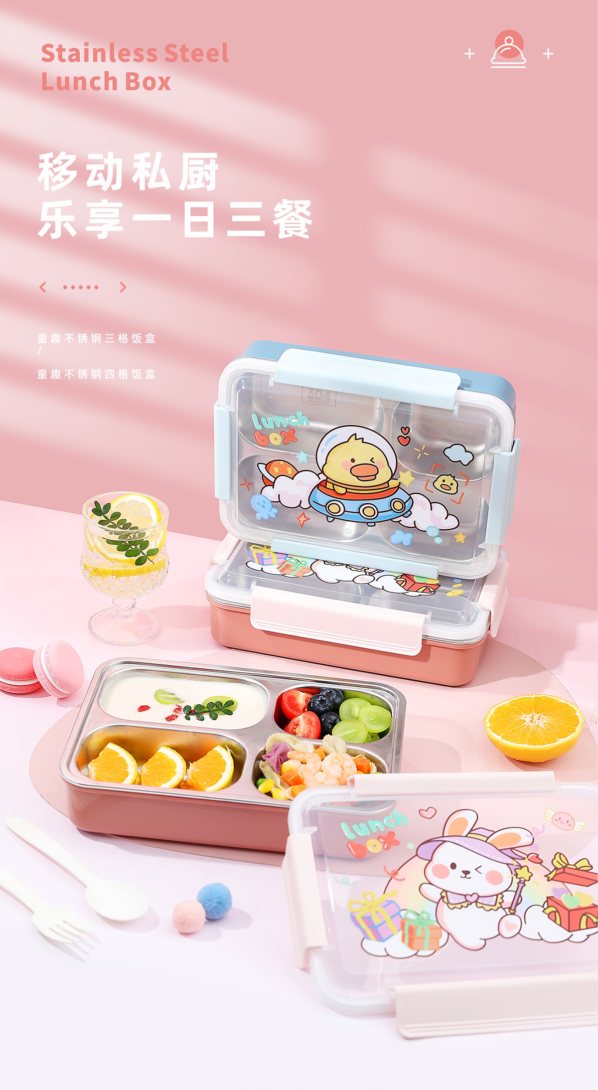 不銹鋼三格/四格飯盒(小號/中號)