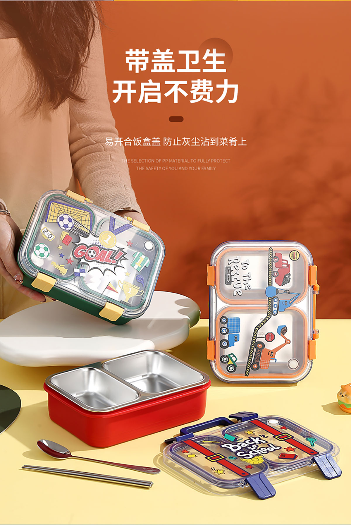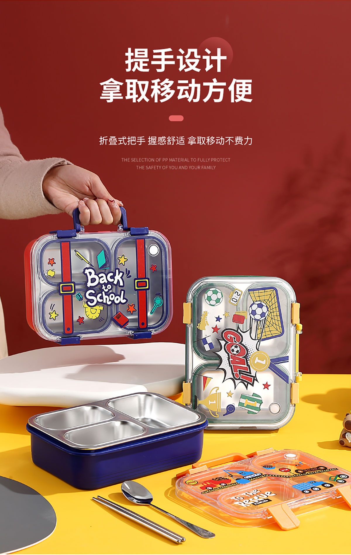 手提背包獨(dú)立密封二格/三格/四格帶碗不銹鋼餐盒