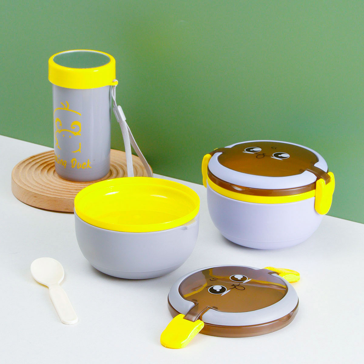 Size: 飯盒:125*125*9mm/600ml 水壺:70*130mm/350ml