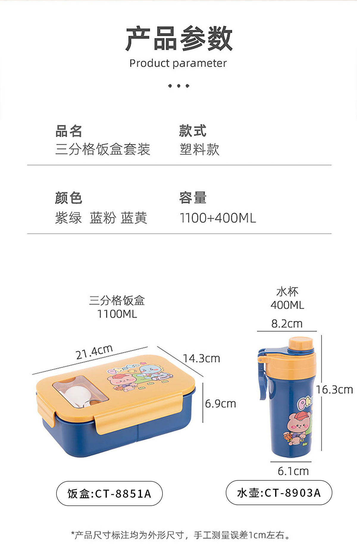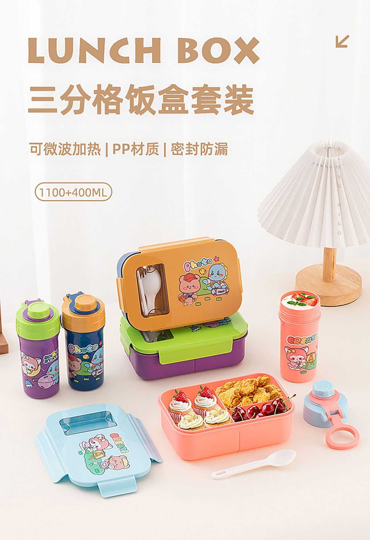 卡通分格飯盒/手提運動水壺
