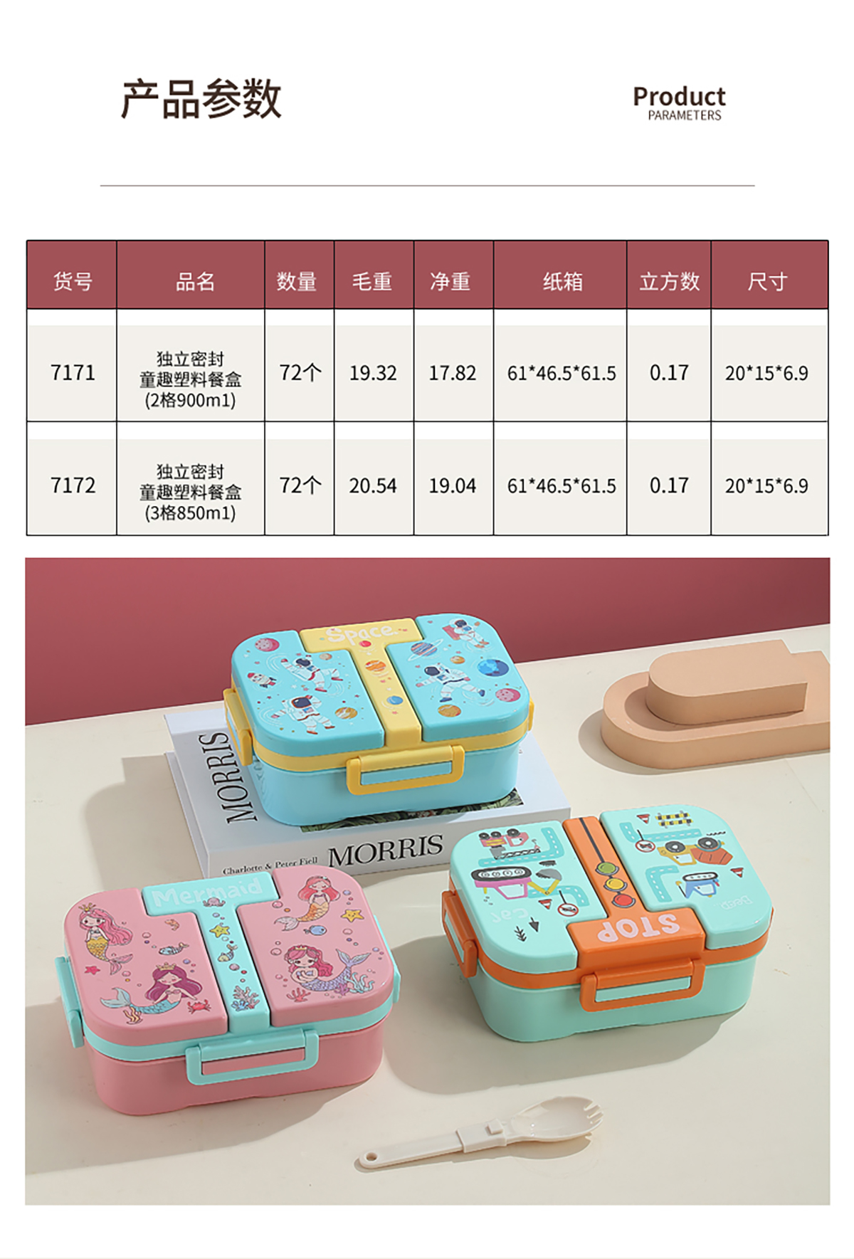 Size: LX-7171(2格):200*150*69mm/900ml LX-7172(3格):200*150*69mm/850ml