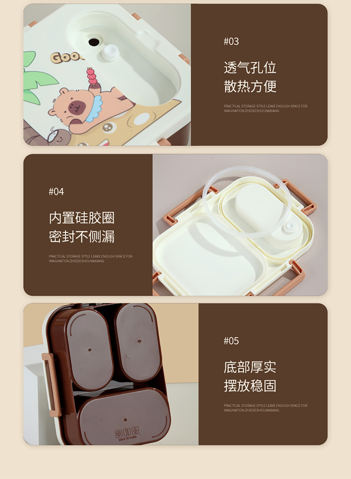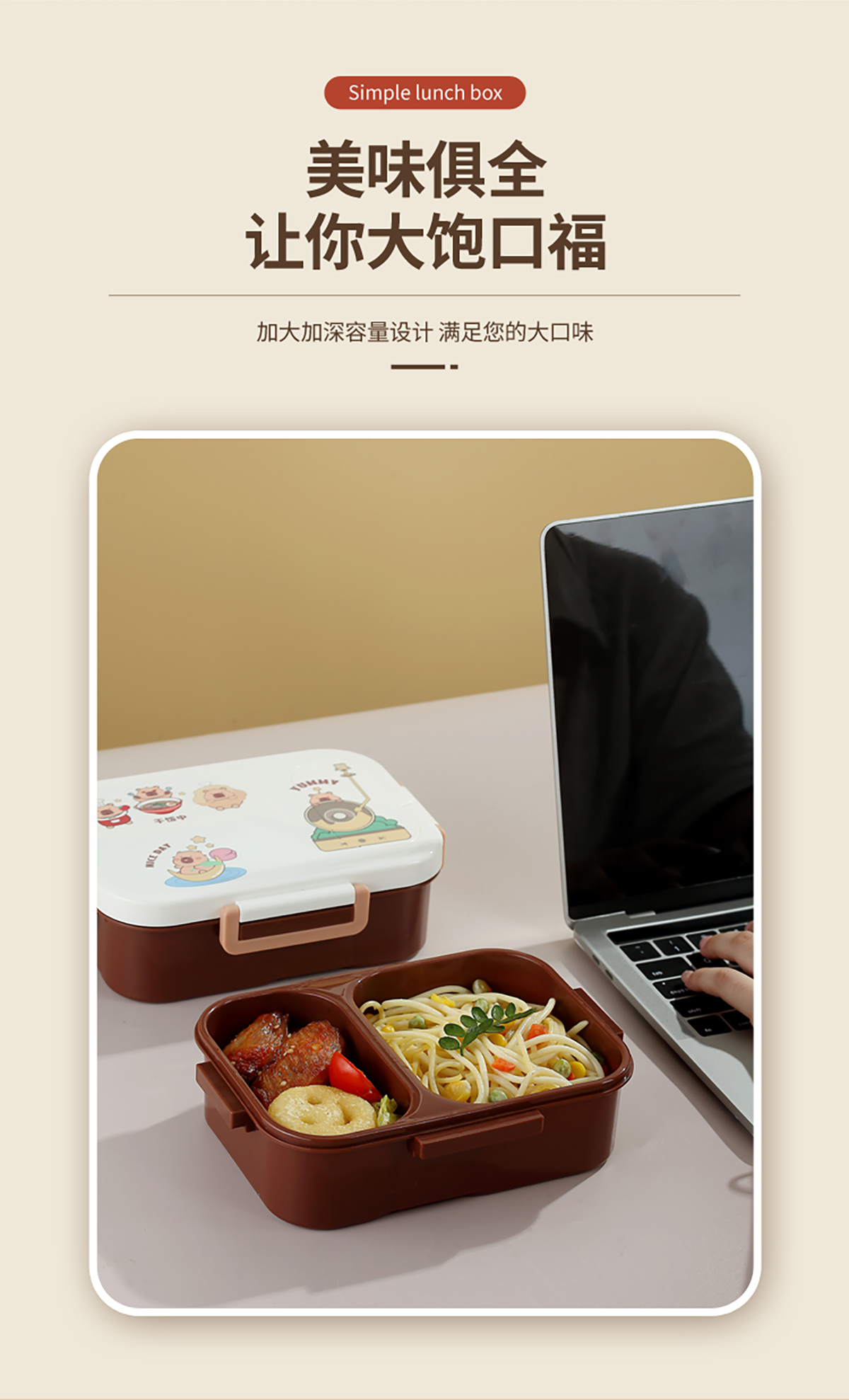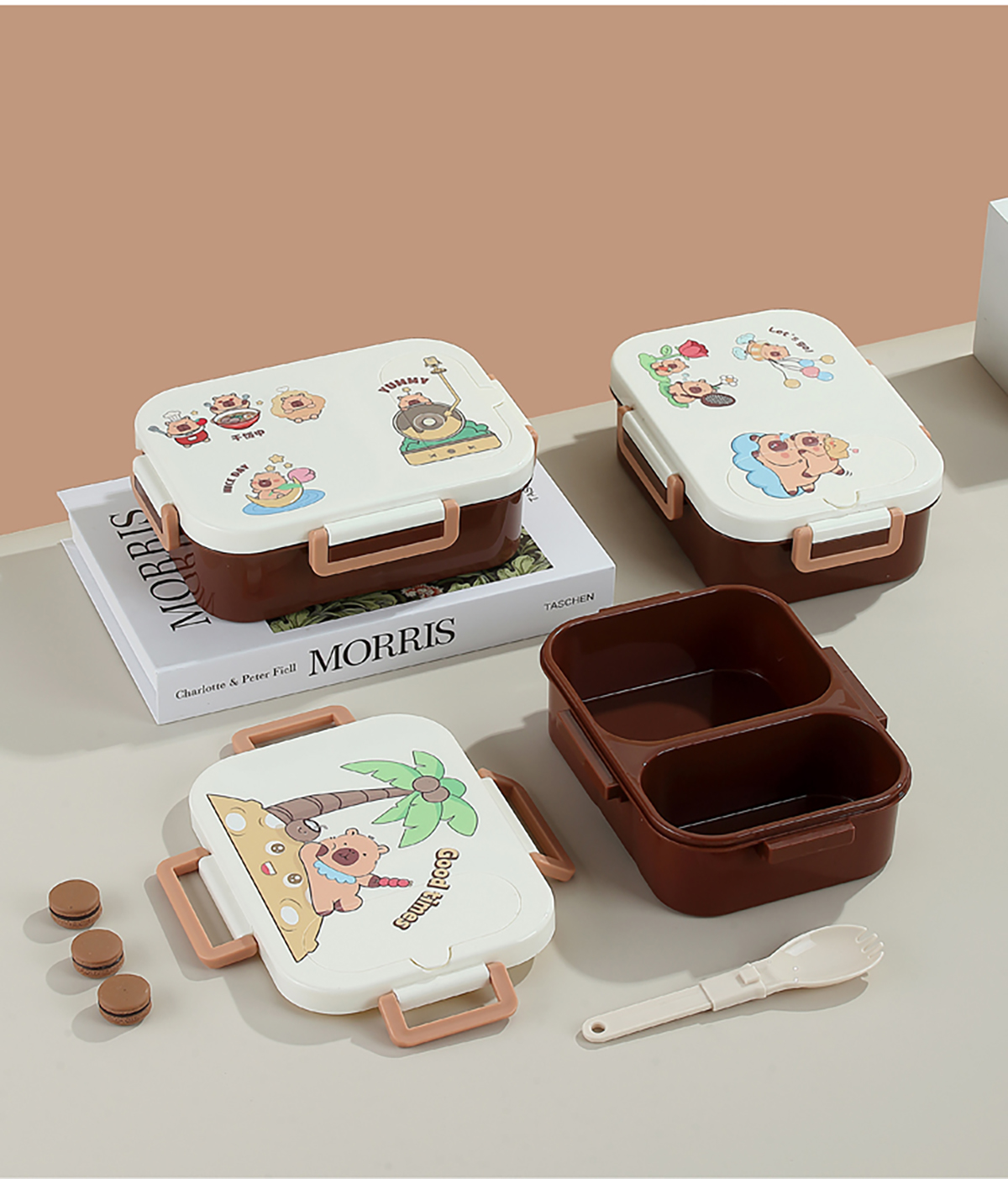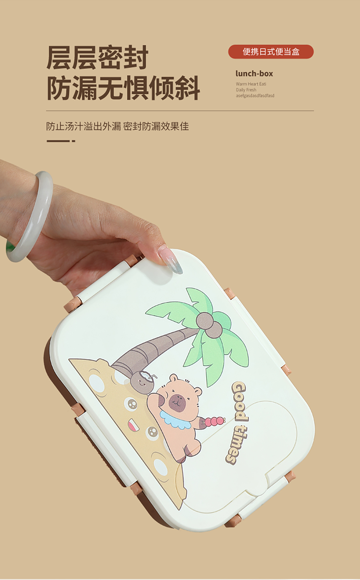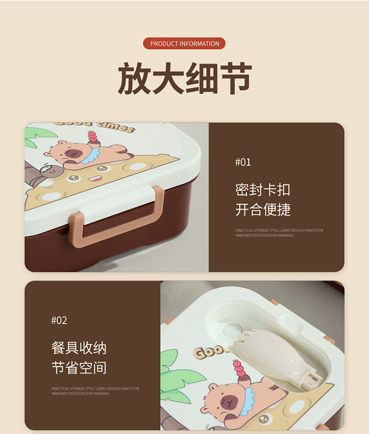 UV獨(dú)立密封卡皮家族塑料餐盒2格900ml/3格850ml (配PP折疊湯勺)