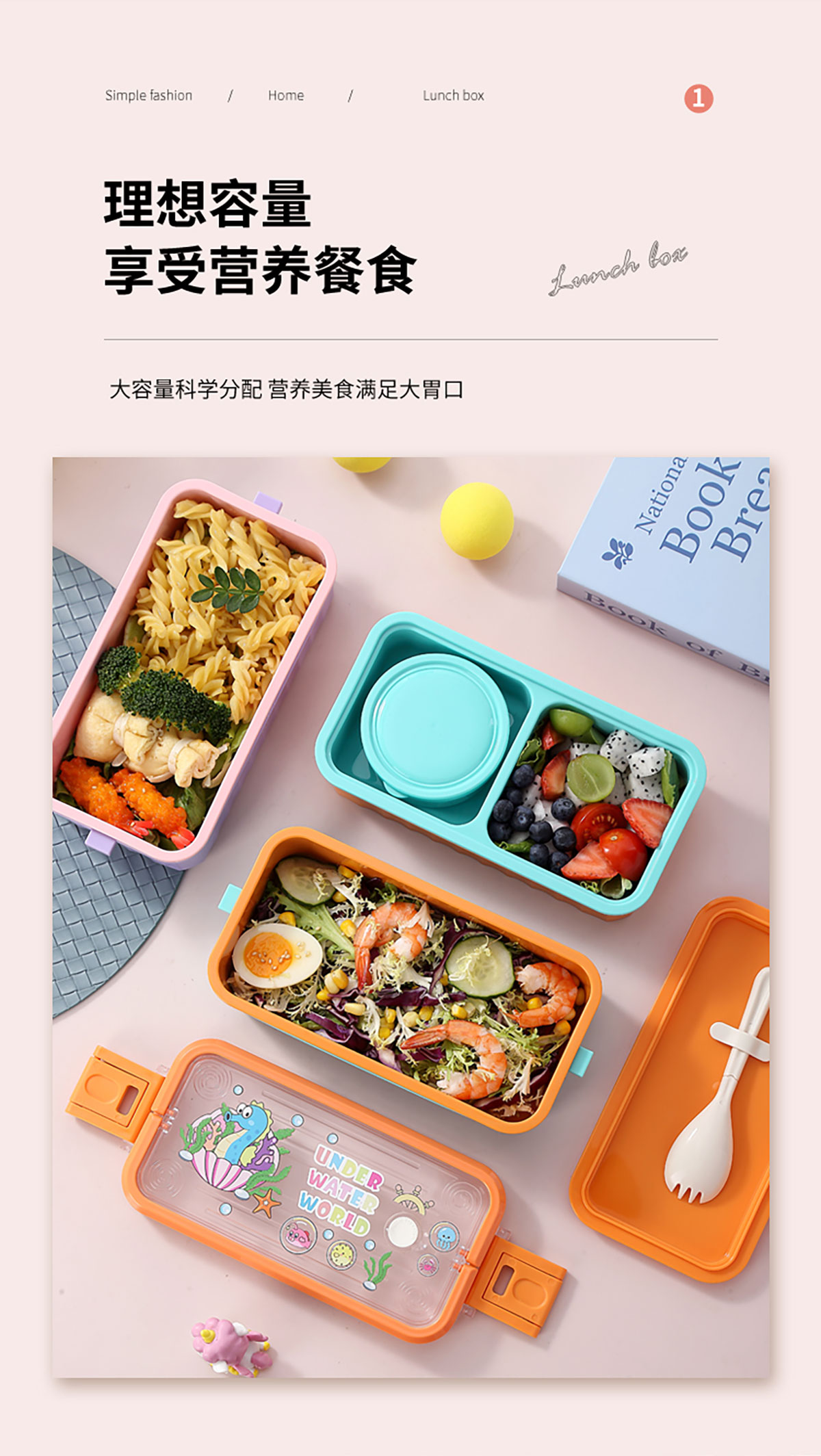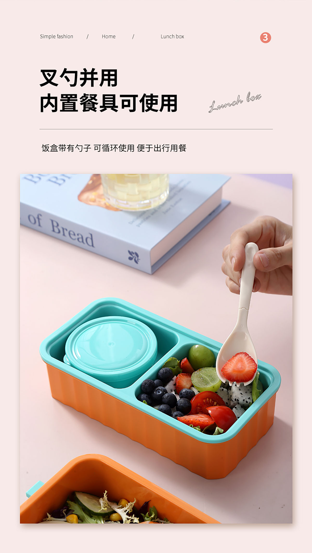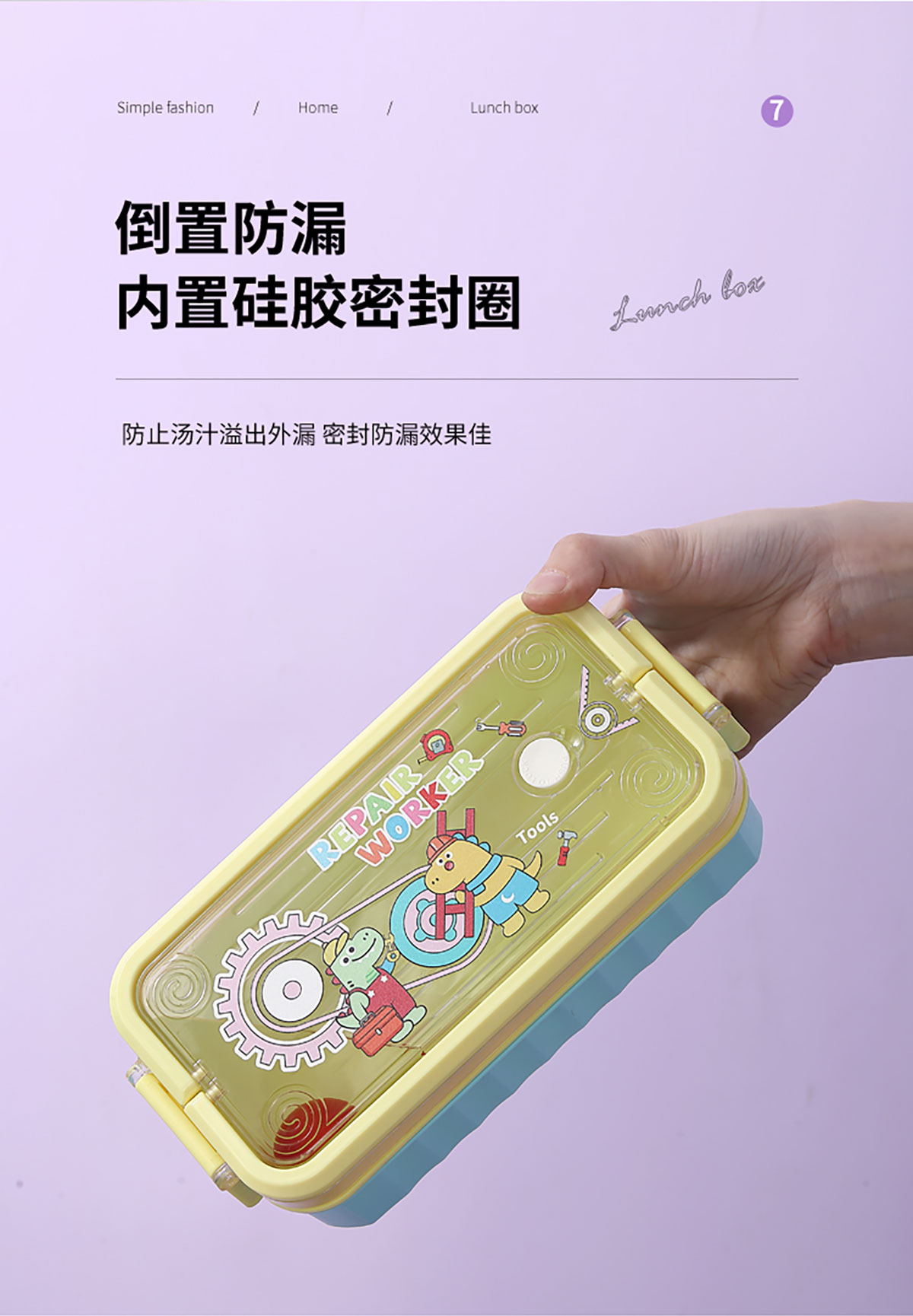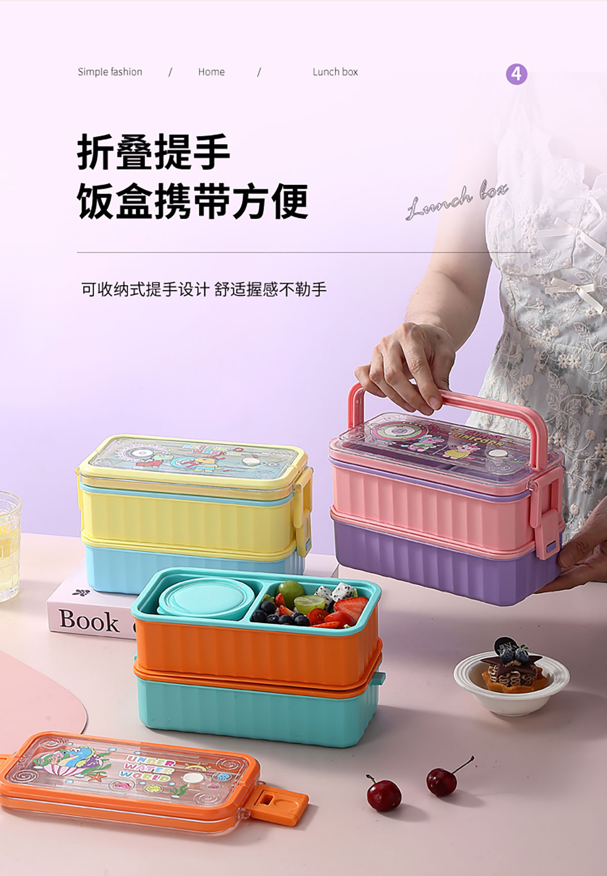UV 手提單層/雙層卡通塑料餐盒(配PP叉勺+PP湯碗150ml)