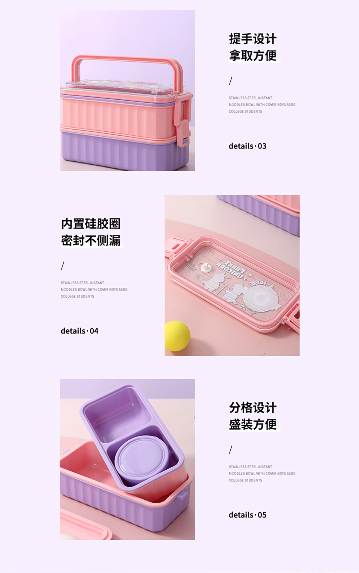 Size: LX-7193(單層):214*105*69mm/750ml+PP湯碗150ml