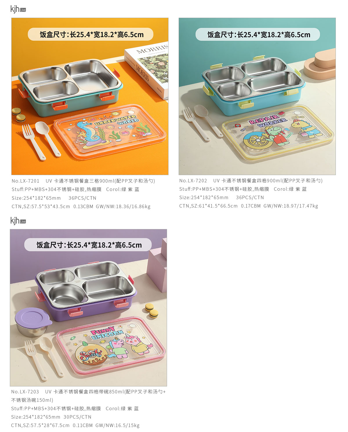 Size: LX-7201(三格):254*182*65mm/900ml