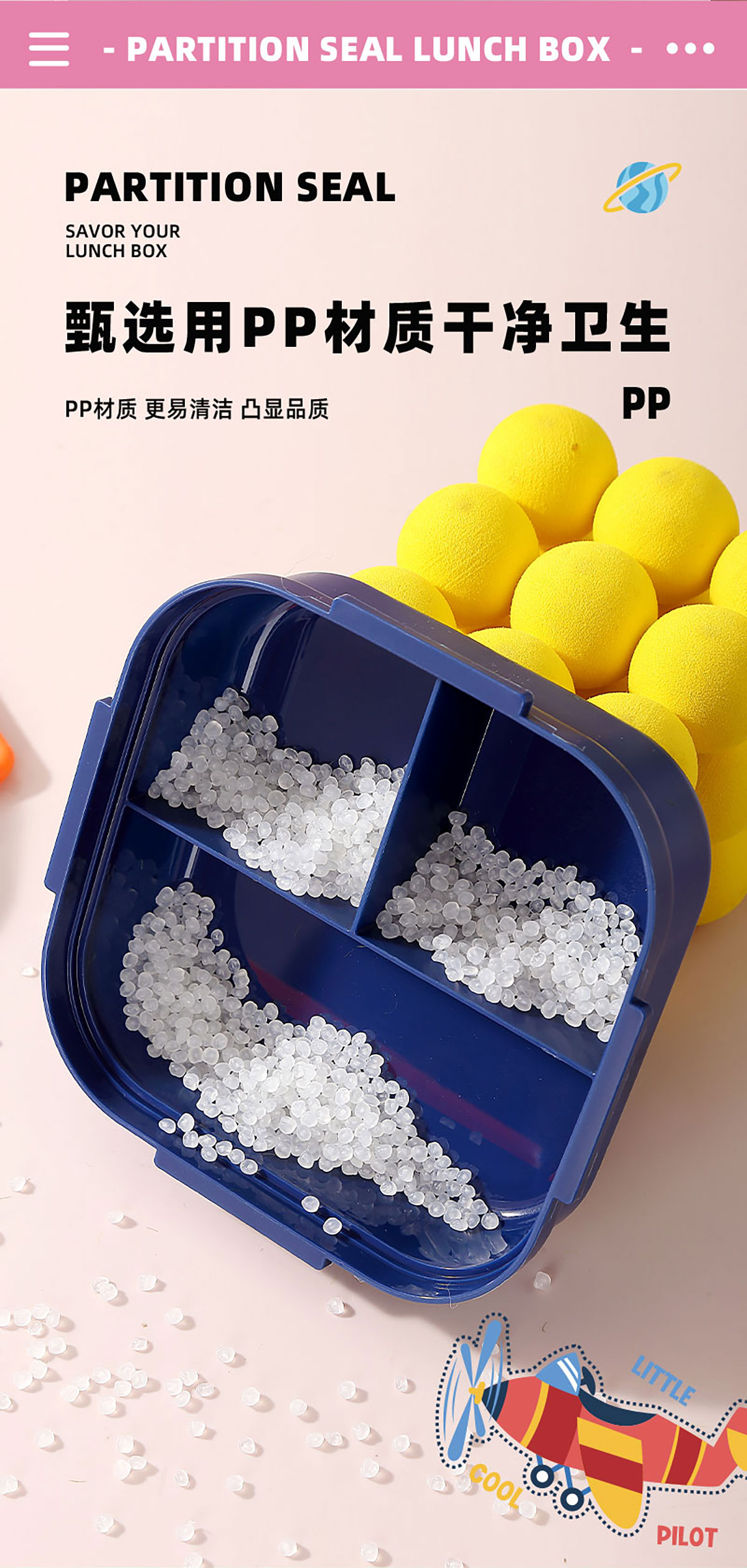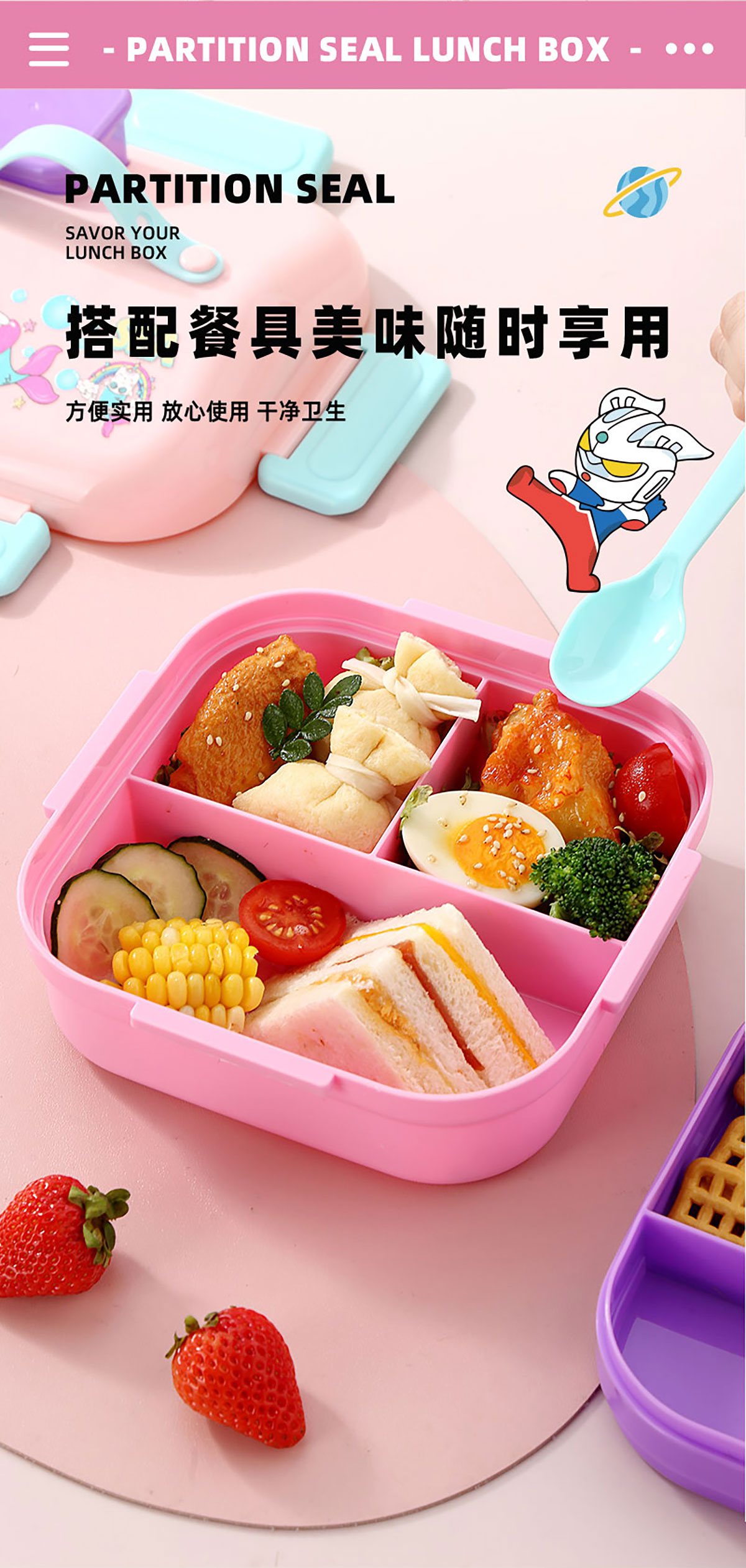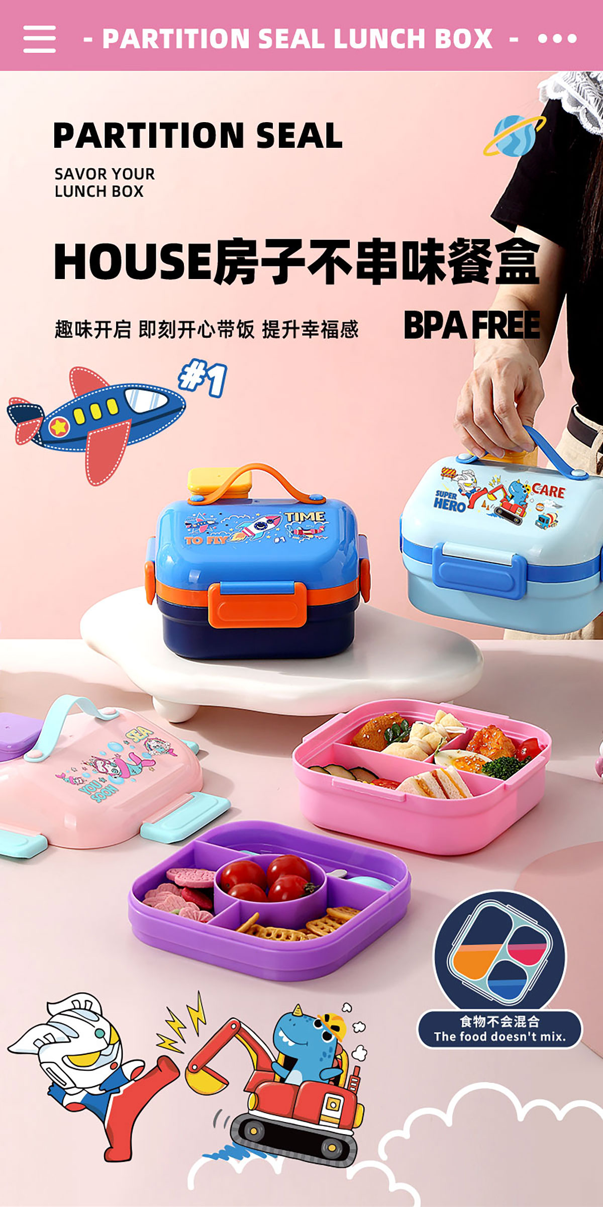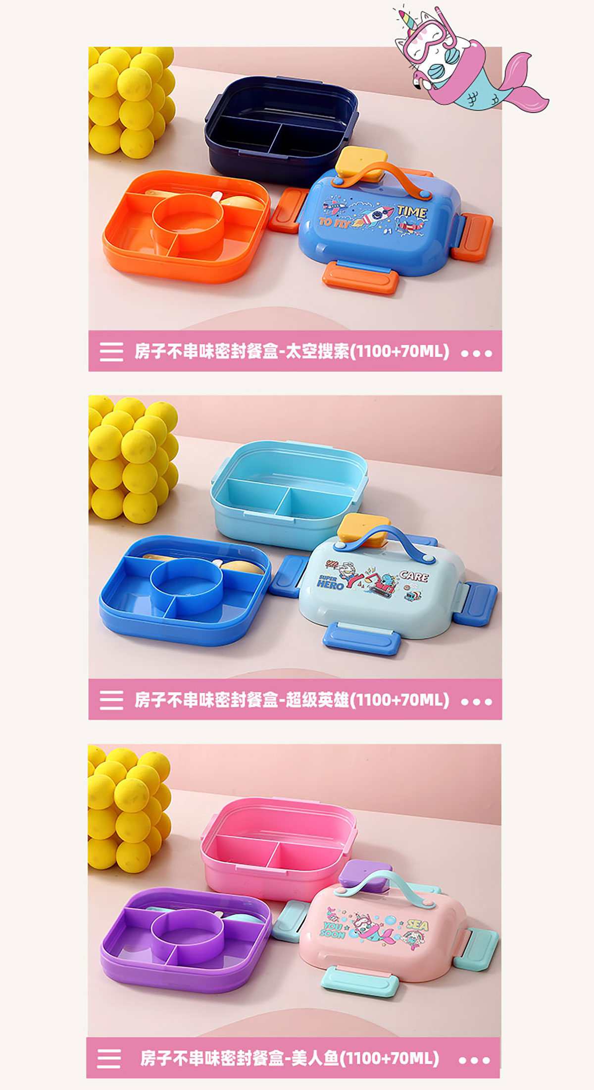 HOUSE房子不串味餐盒(方形塑料3格1100ml+碗70ml+PP勺)