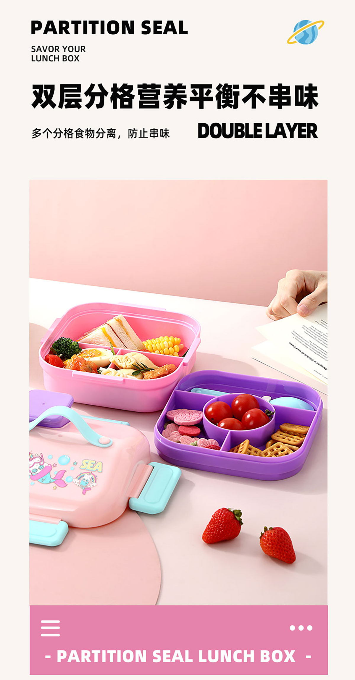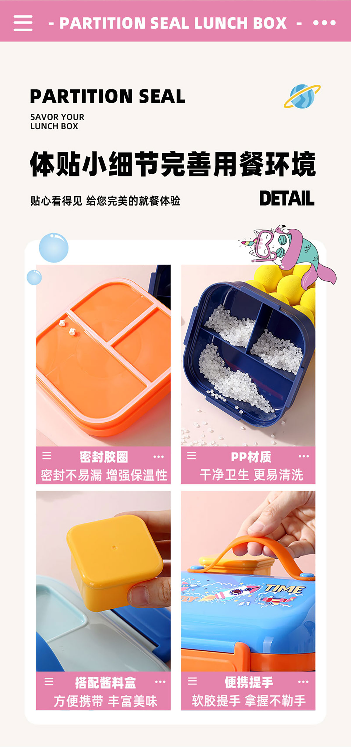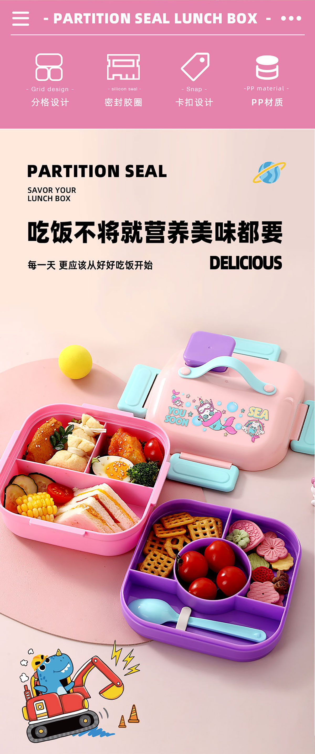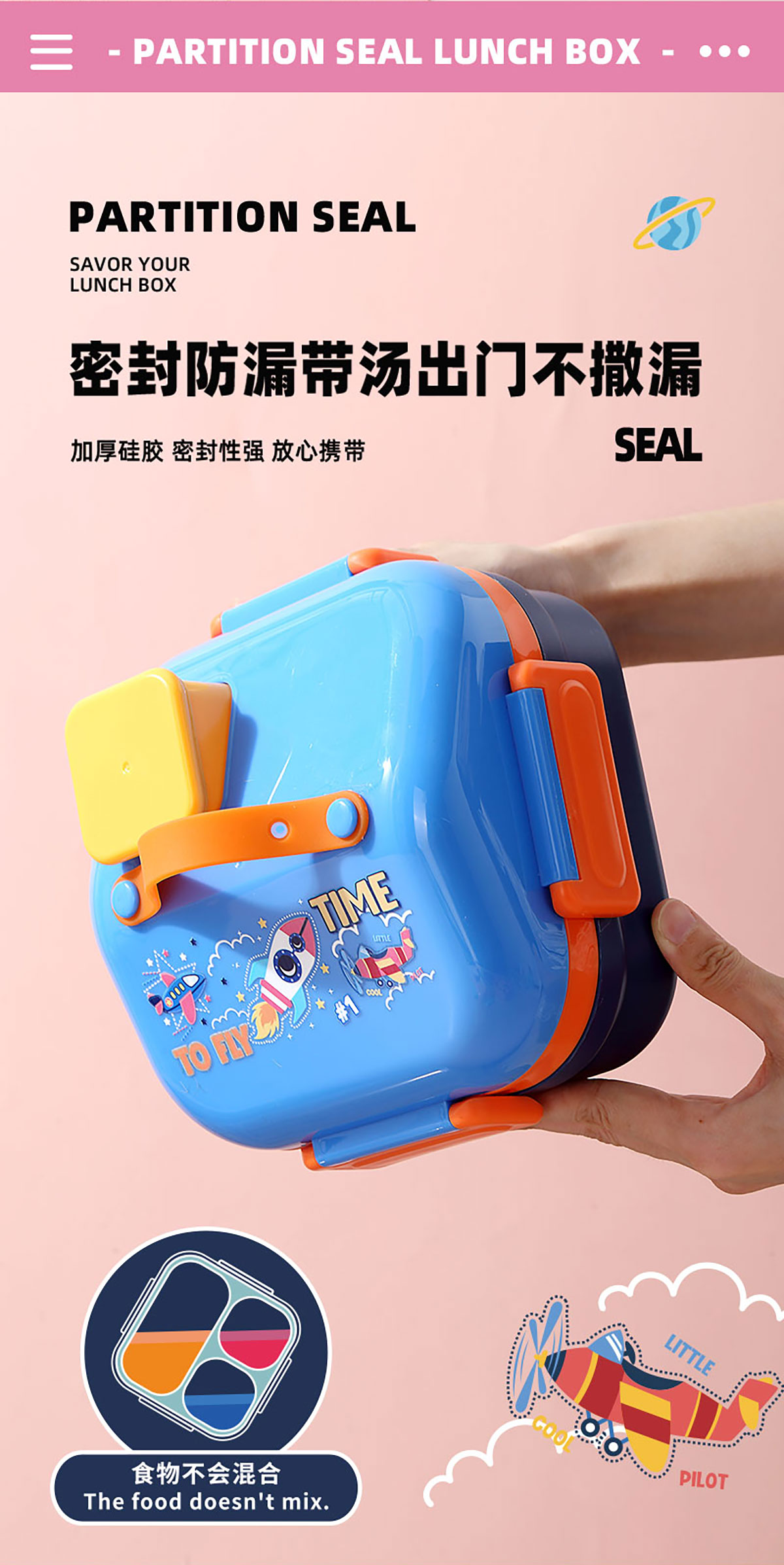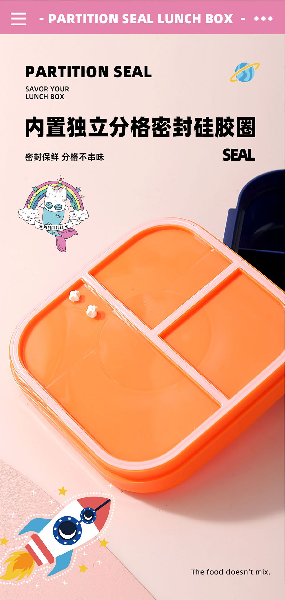 HOUSE房子不串味餐盒(方形塑料3格1100ml+碗70ml+PP勺)