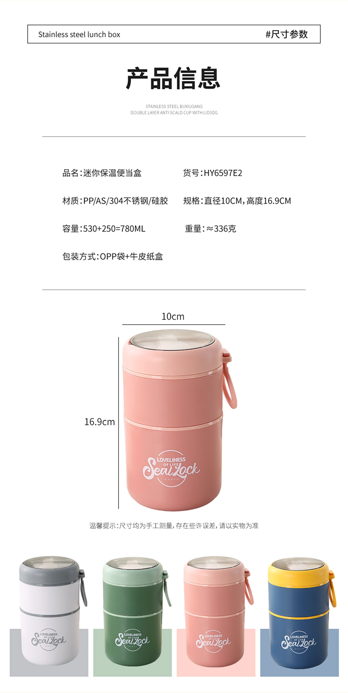 Size: 直徑100*高度169mm/上層250ml+下層530ml=780ml