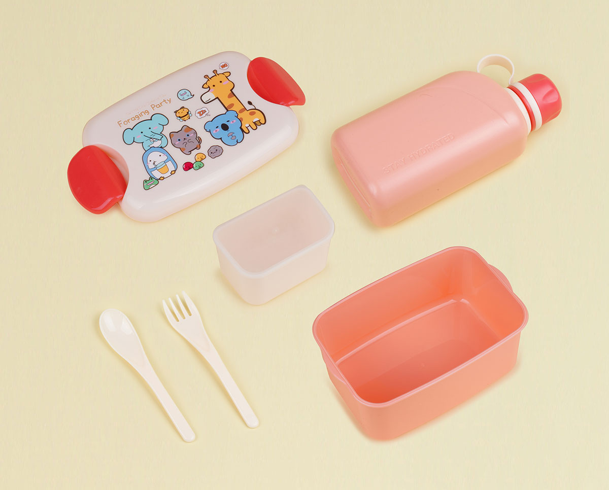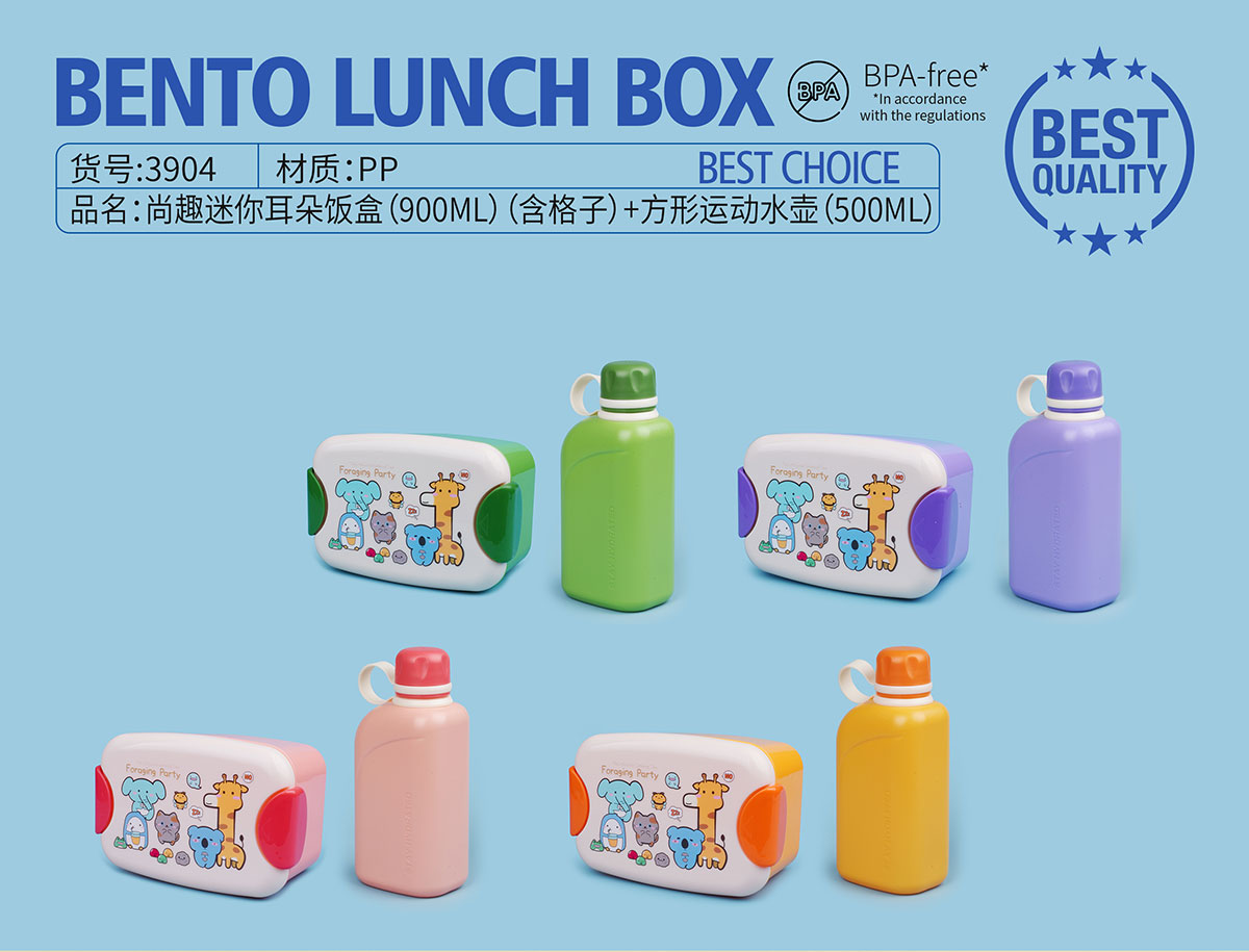 尚趣迷你耳朵飯盒(900ml)(含格子)+方形運(yùn)動(dòng)水壺(500ml)