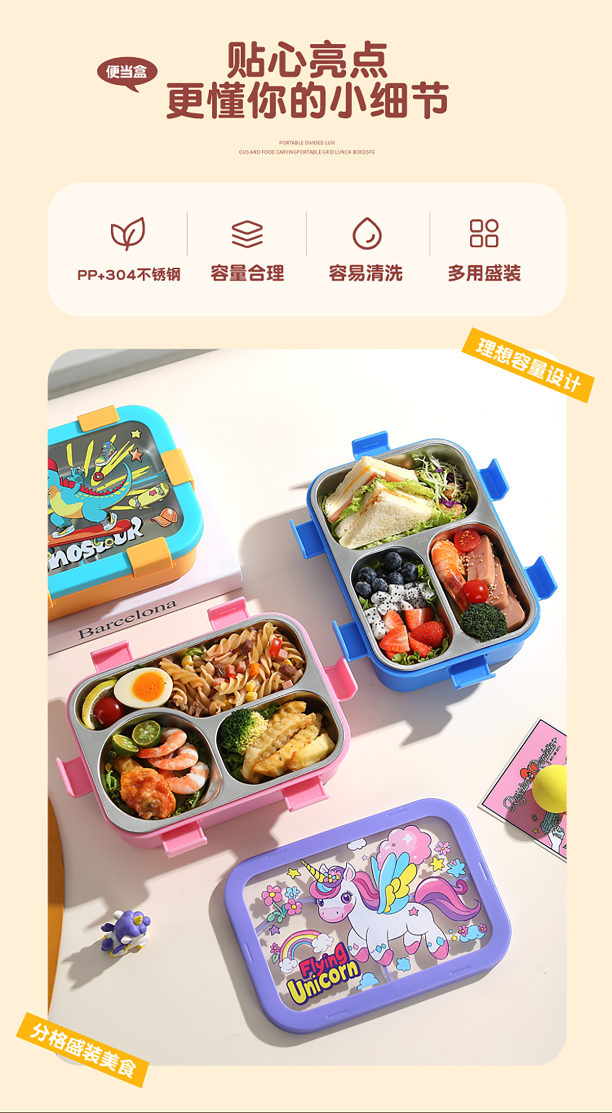 星樂便當(dāng)盒不銹鋼 卡通款 下單可選(三格700ml)/(三格碗型650ml)