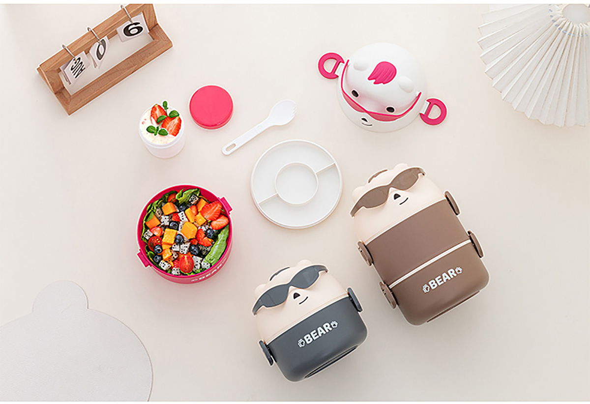 墨鏡熊單層/單層加水杯/雙層/雙層加水杯便當盒